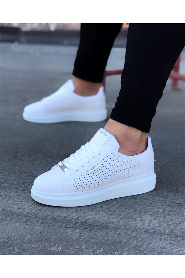 ERKEK CASUALWagoon WG01 Beyaz Delikli Erkek Yüksek Taban Ayakkabı