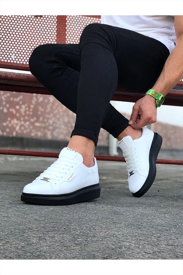 ERKEK CASUALWagoon WG01 Beyaz Kömür Düz Casual Ayakkabı
