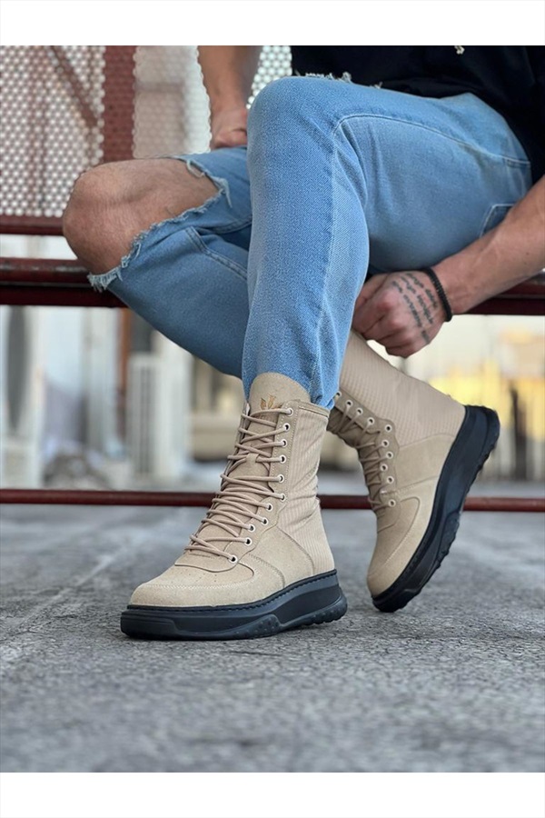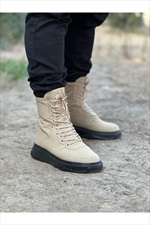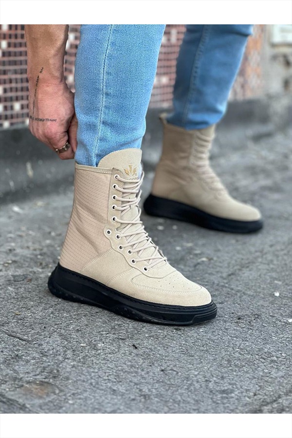Wagoon WG012 Bej Kömür Süet Uzun Bağcıklı Bot