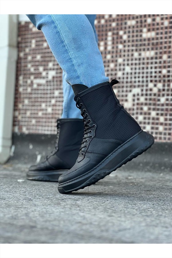 Wagoon WG012 Kömür Cilt Uzun Bağcıklı Bot