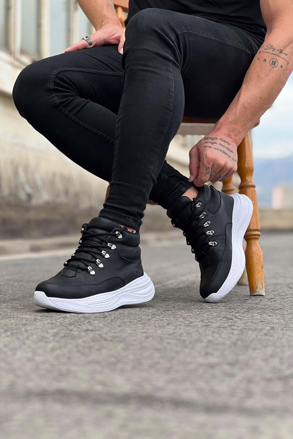 ERKEK BOTWagoon WG035 Siyah Cilt Yüksek Taban Yarım Bilek Bot