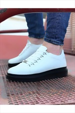 ERKEK CASUALWagoon WG08 Beyaz Kömür Düz Erkek Casual Ayakkabı