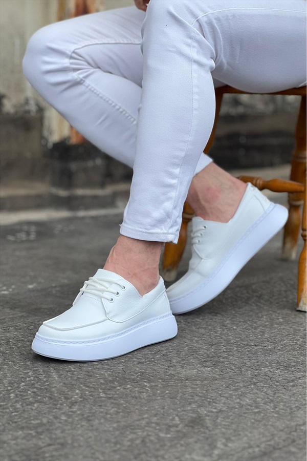 Wagoon WG508 Beyaz Cilt Ortopedik Taban Erkek Casual Ayakkabı