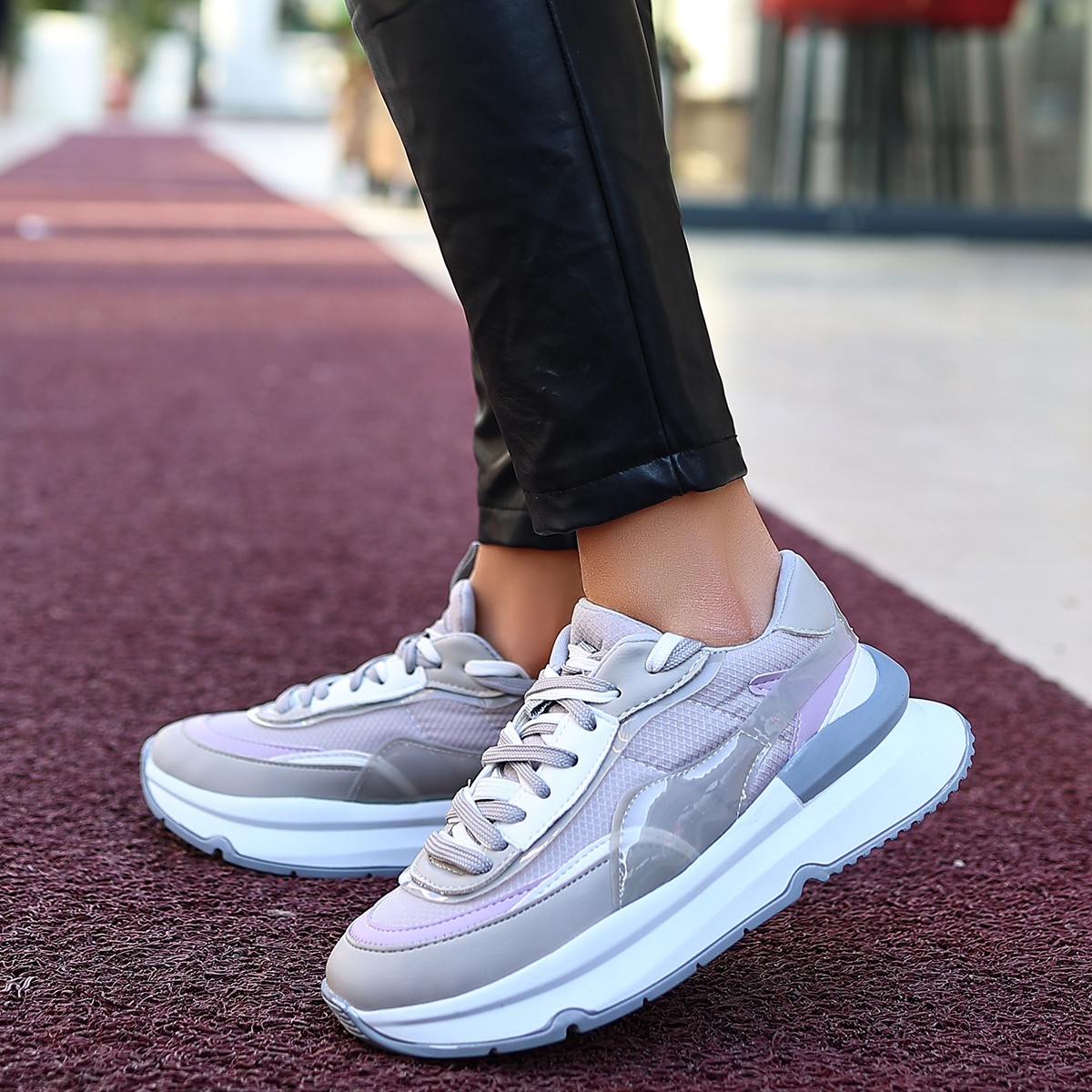 • Aleh Gri Cilt Bağcıklı Spor Ayakkabı