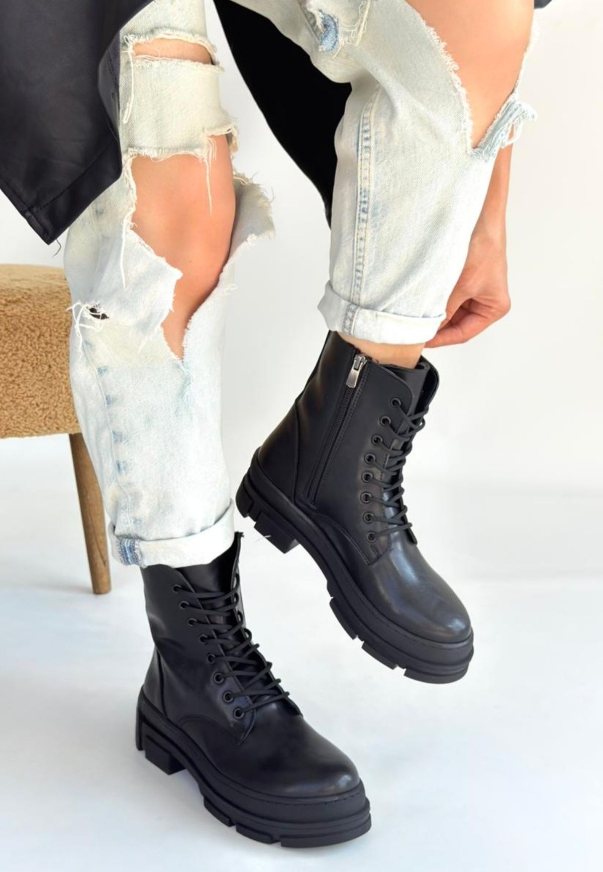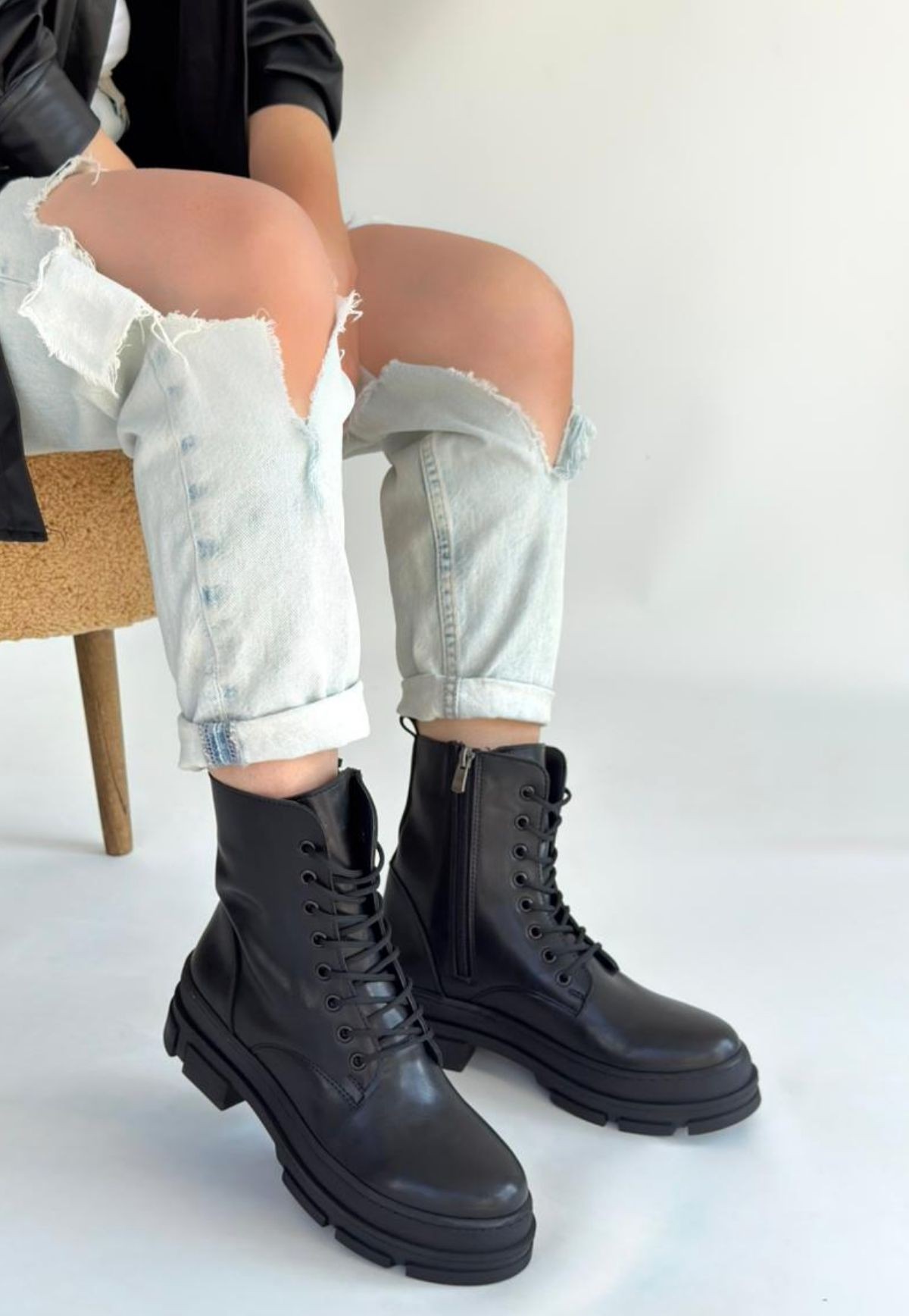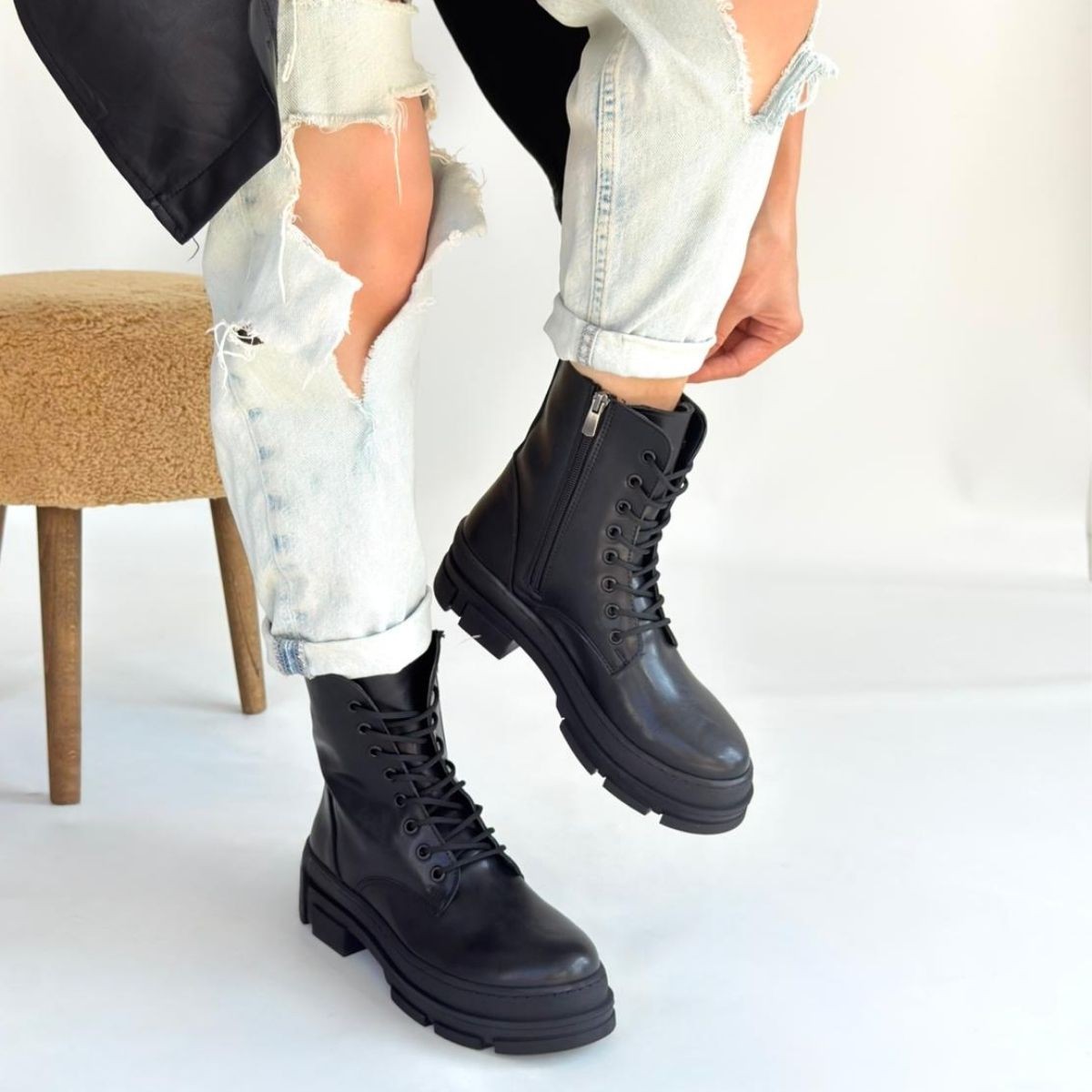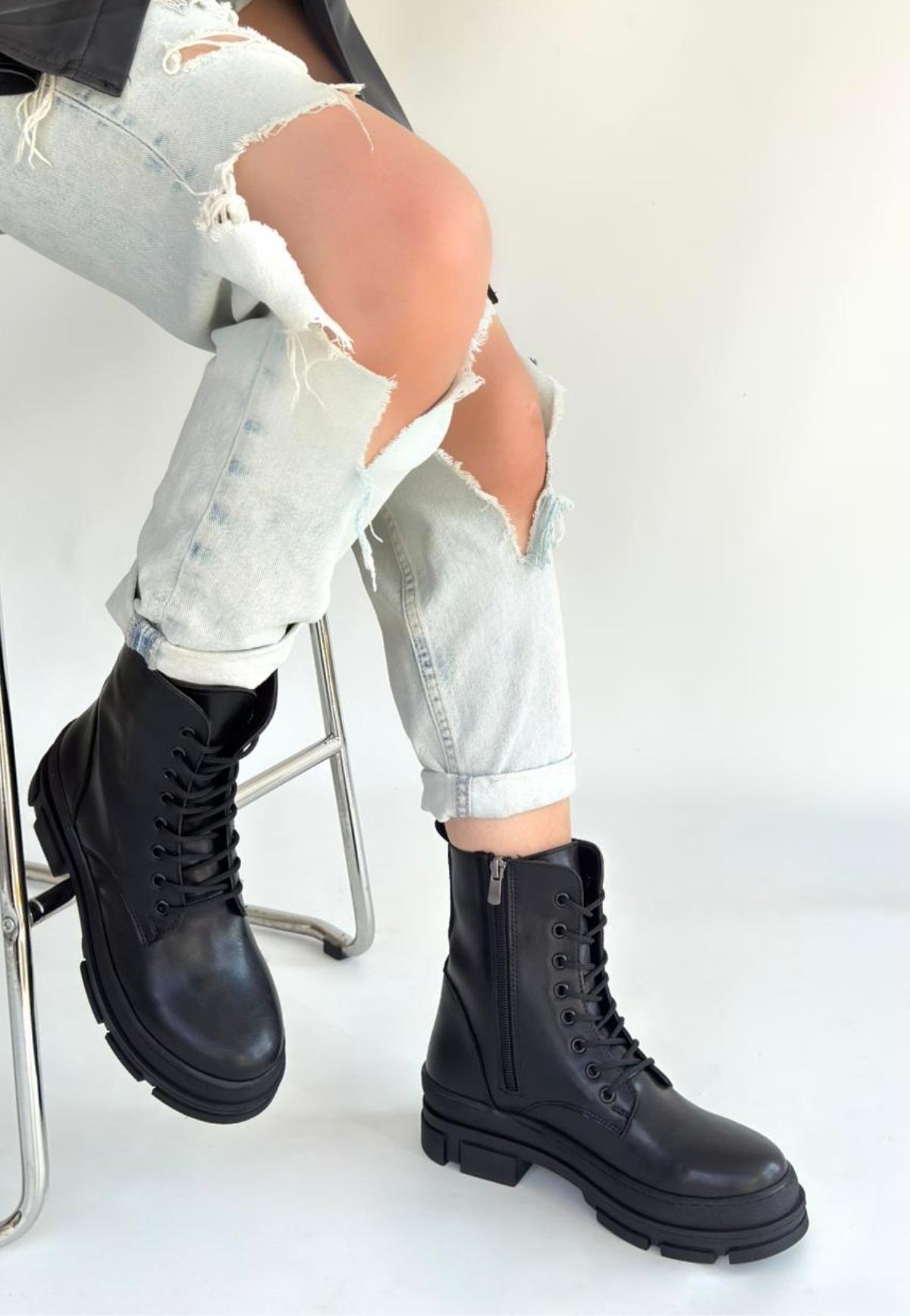 • Allex Siyah Cilt Bağcıklı Bot