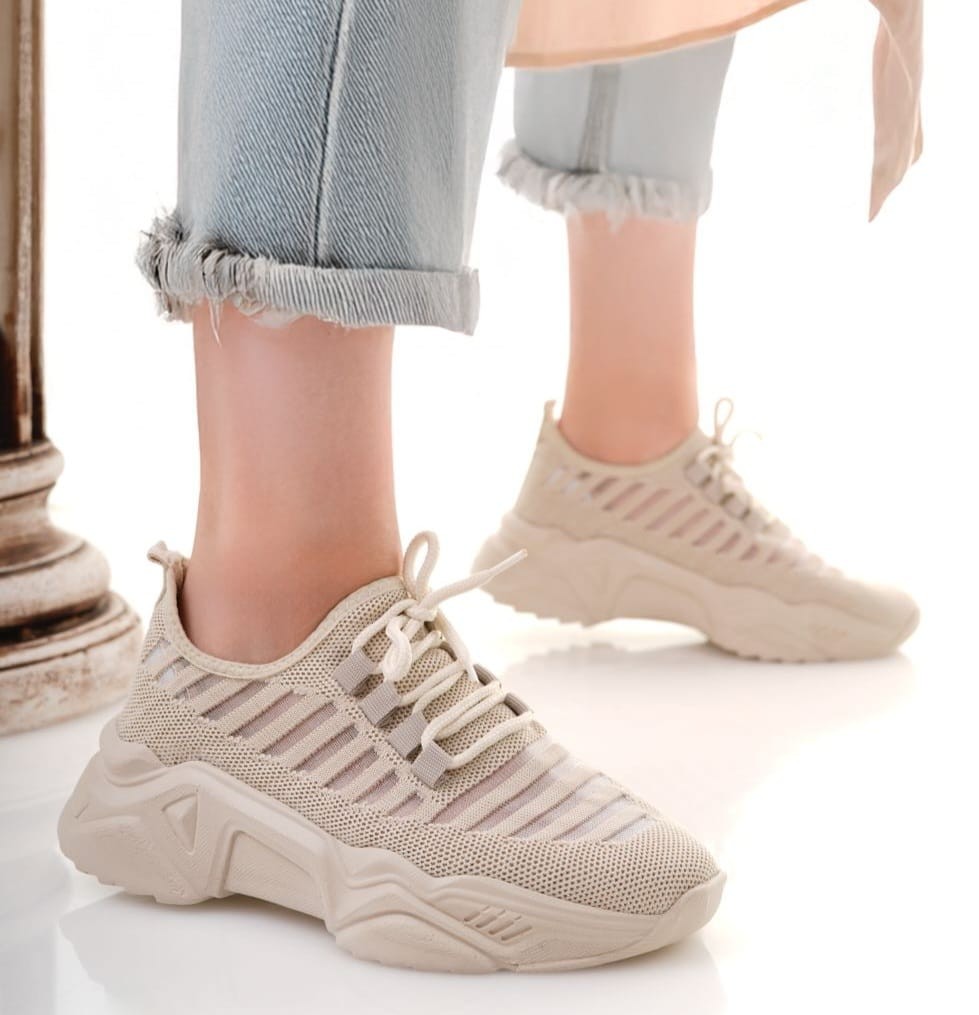 • Ante Bej Triko Bağcıklı Spor Ayakkabı