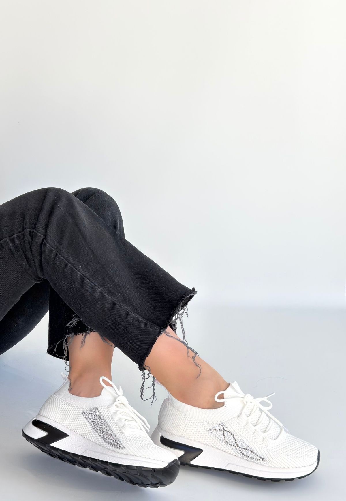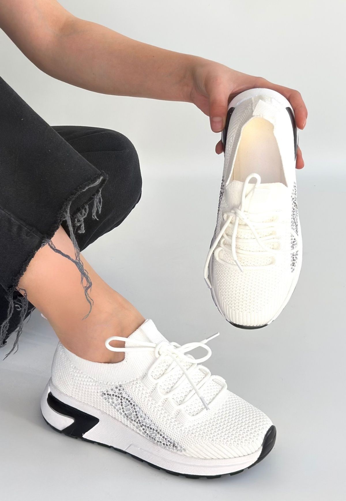 • Belan Beyaz Triko Bağcıklı Spor Ayakkabı