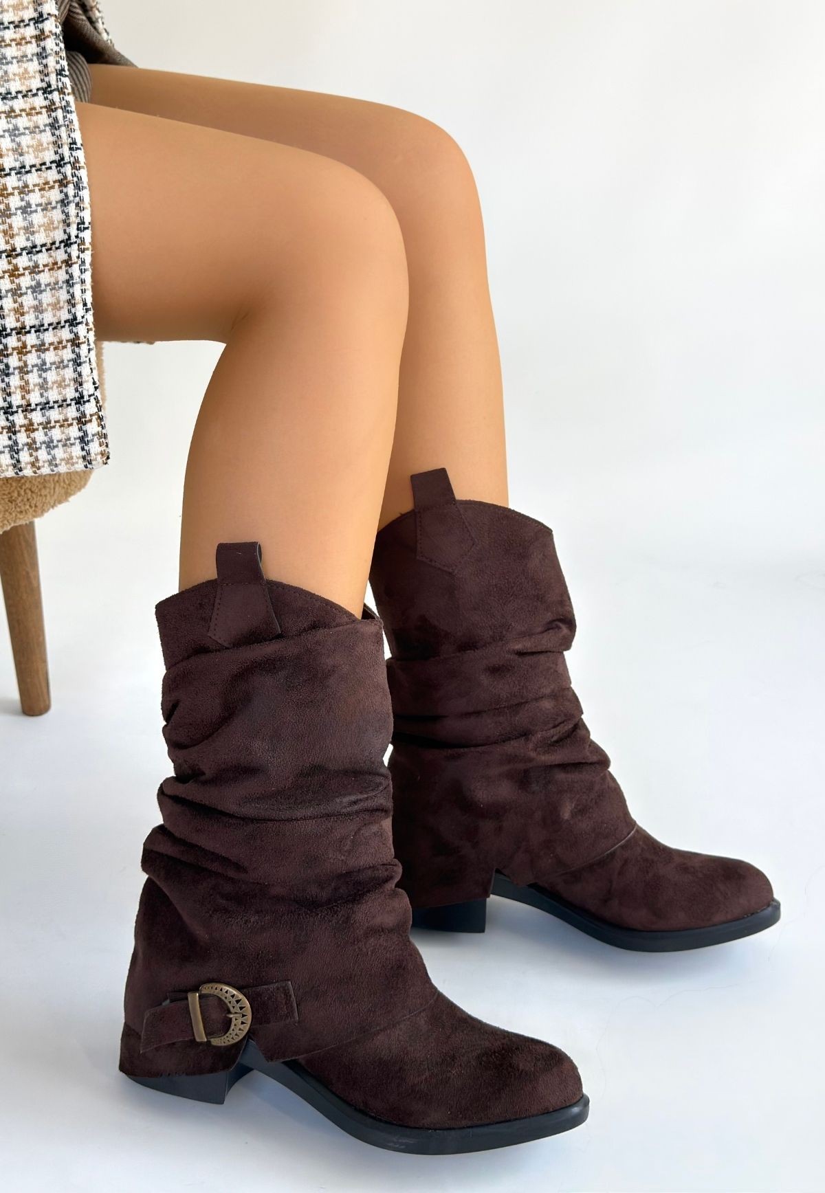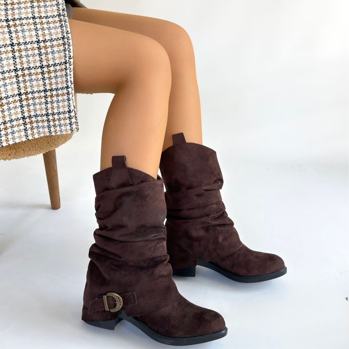 • Canty Kahverengi Süet Körüklü Topuklu Çizme