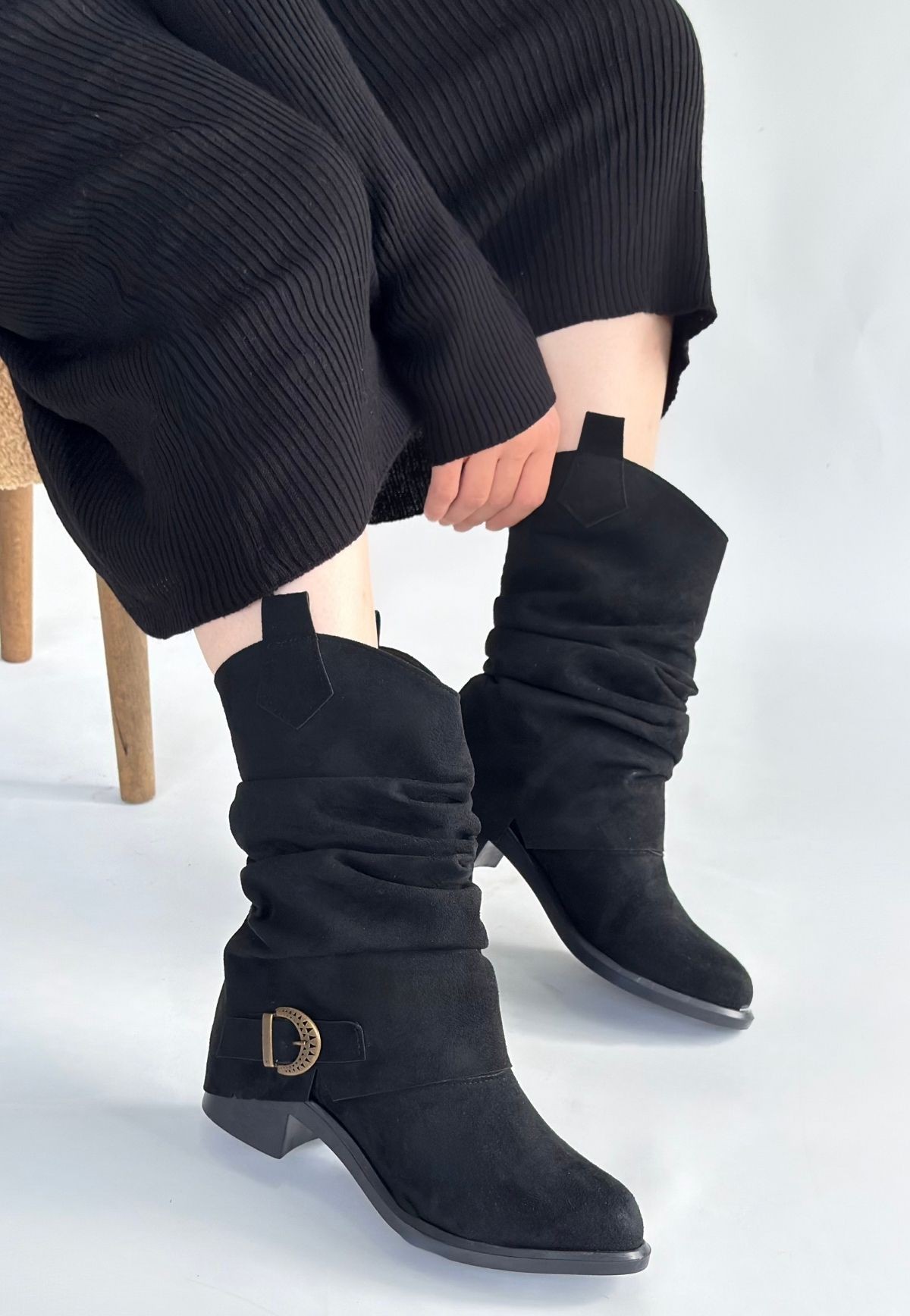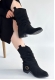 Canty Siyah Süet Körüklü Topuklu Çizme