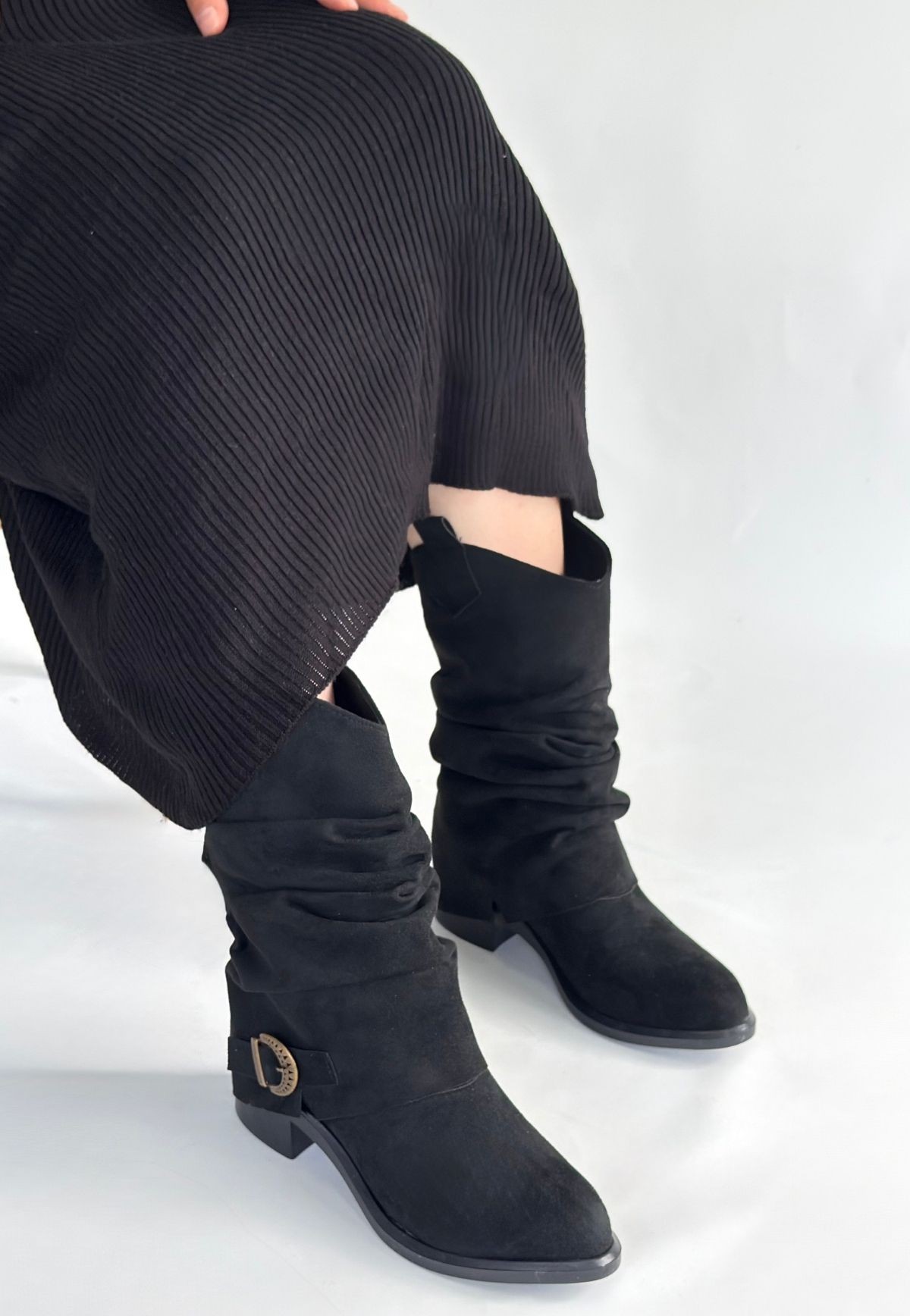 • Canty Siyah Süet Körüklü Topuklu Çizme