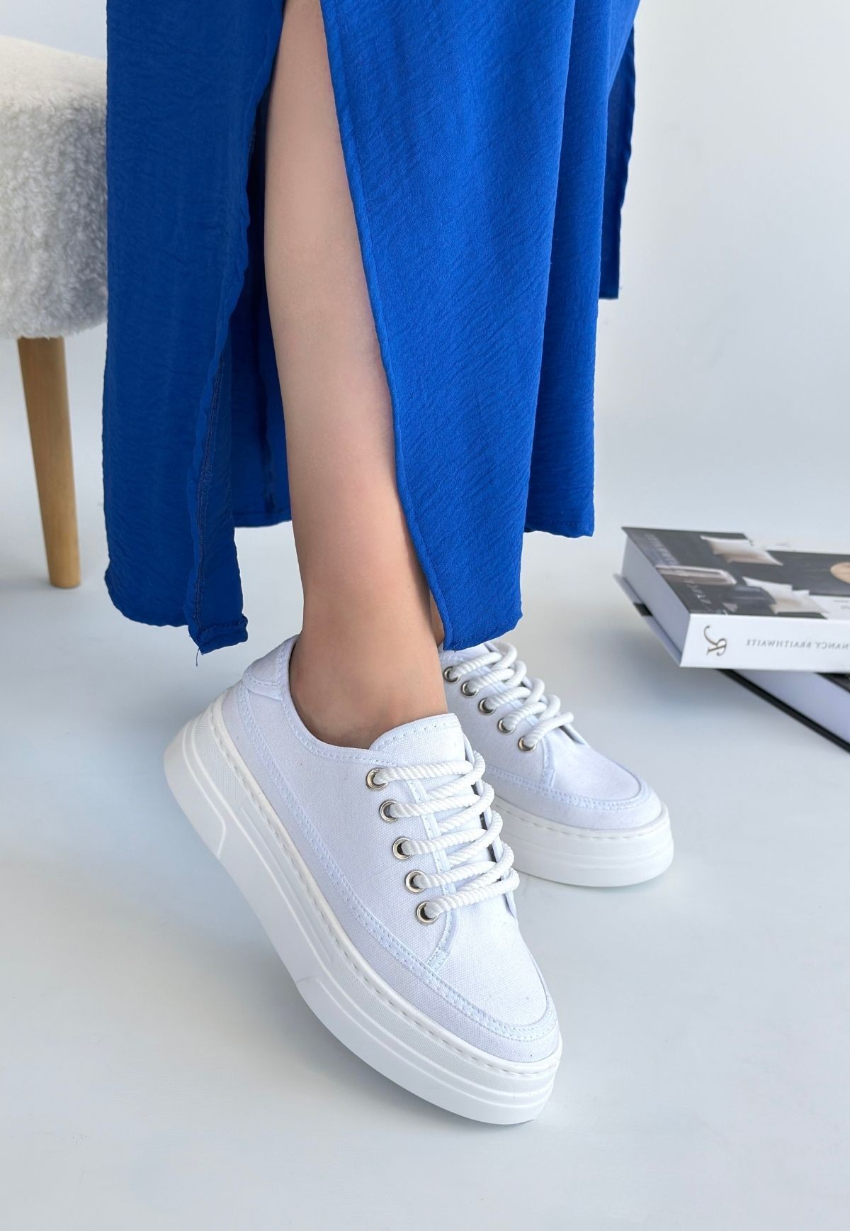 • Carin Beyaz Keten Bağcıklı Spor Ayakkabı