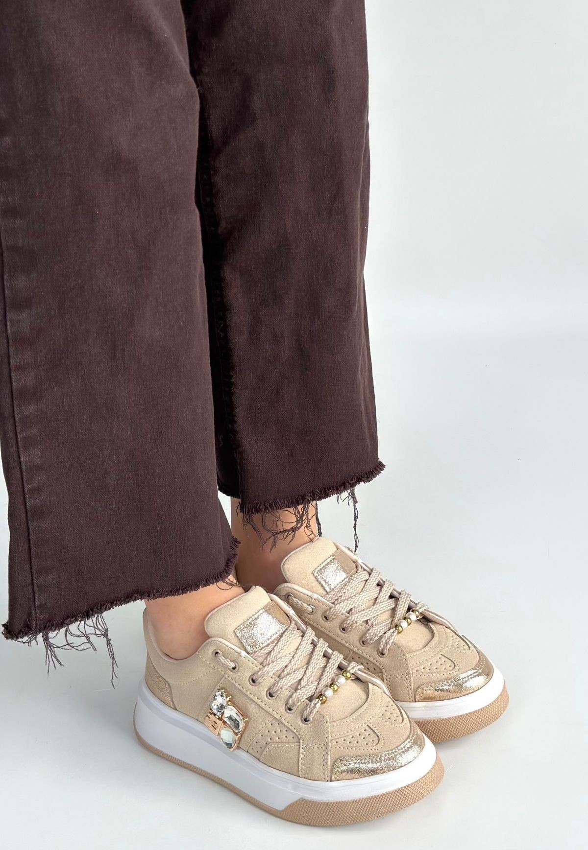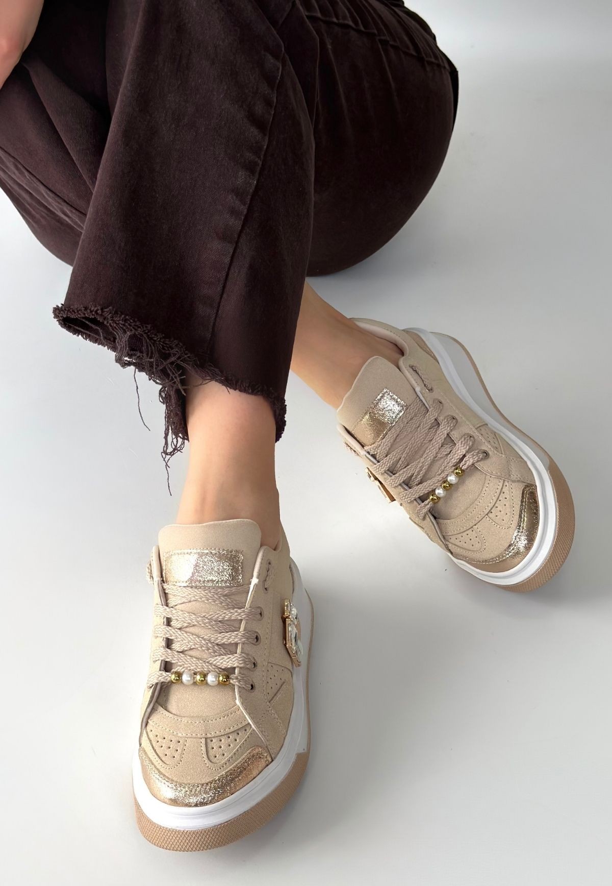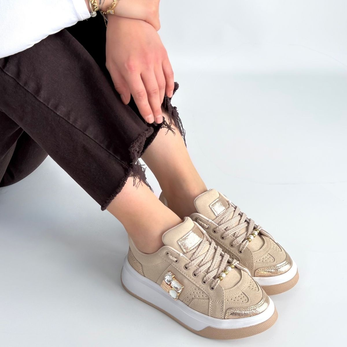 • Ceans Bej Süet Bağcıklı Spor Ayakkabı