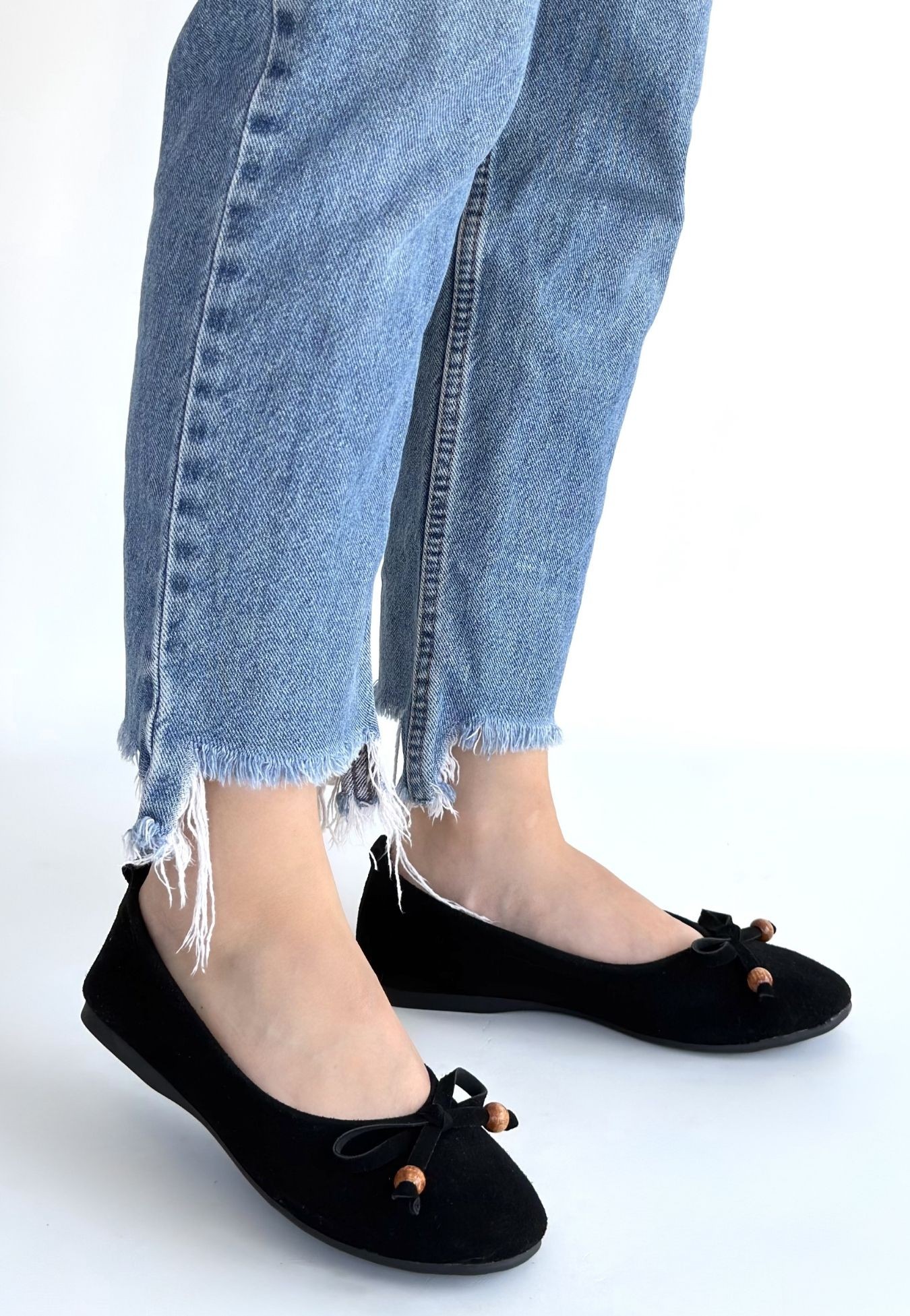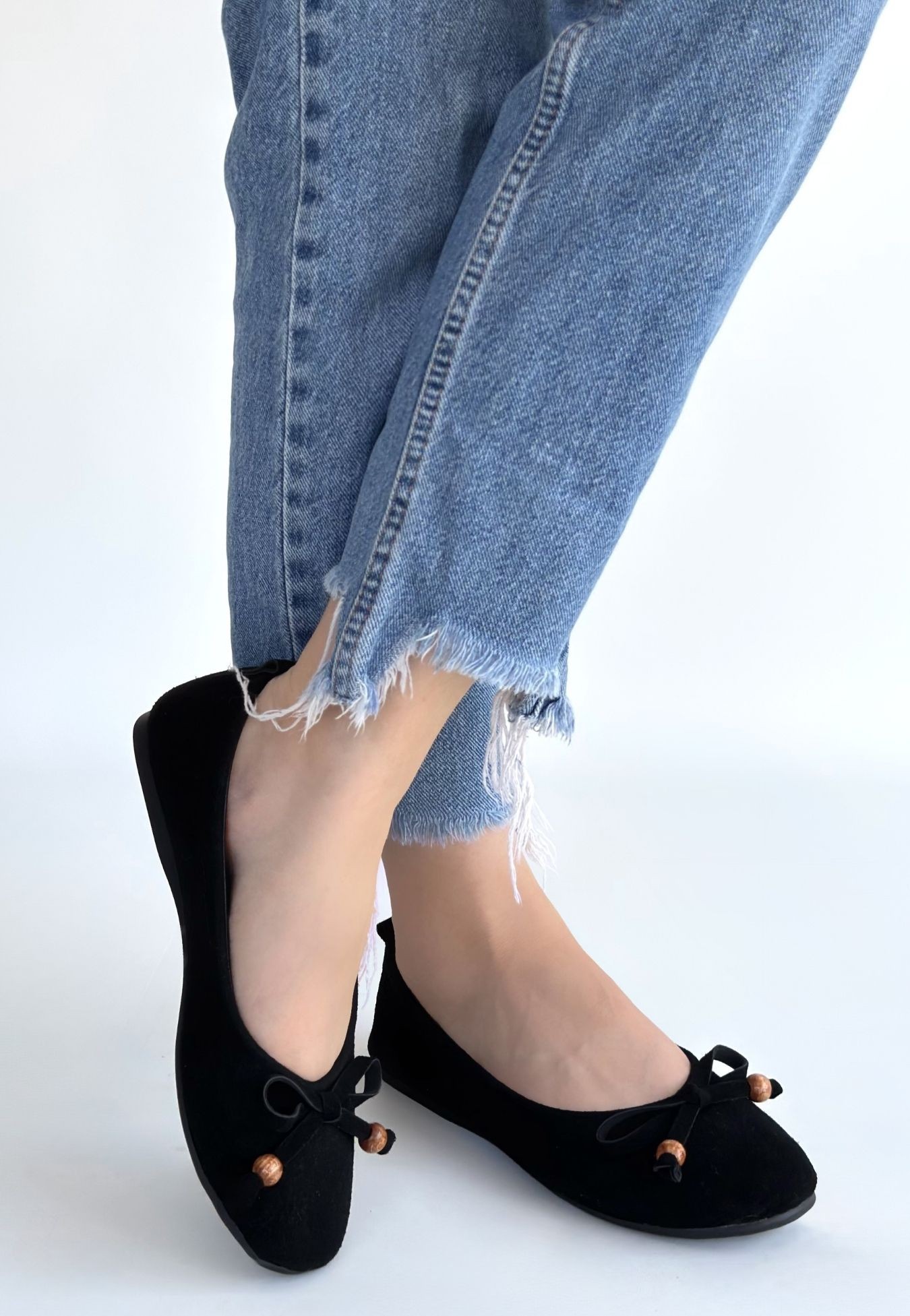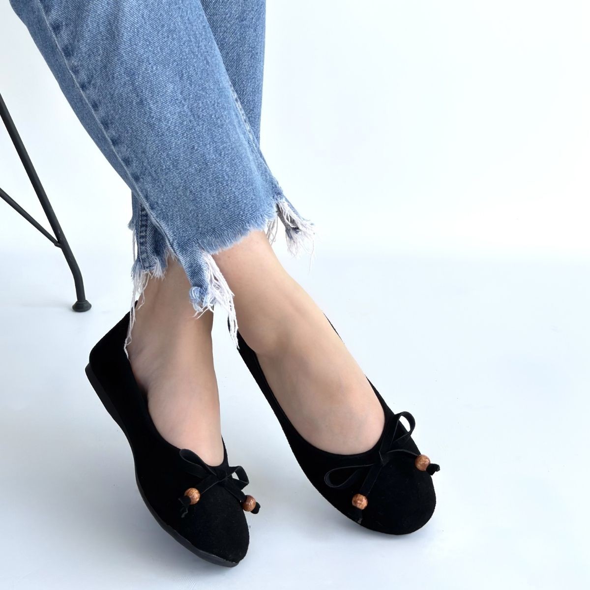 Cear Siyah Deri Tozu Süet Babet Ayakkabı