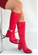 Çizme Mooni Kırmızı Cilt Topuklu Çizme