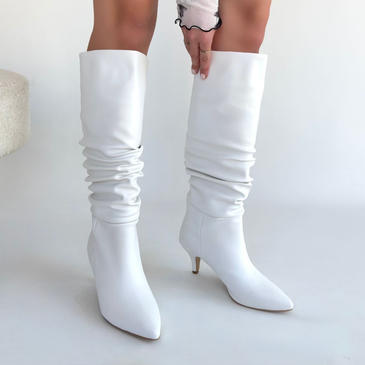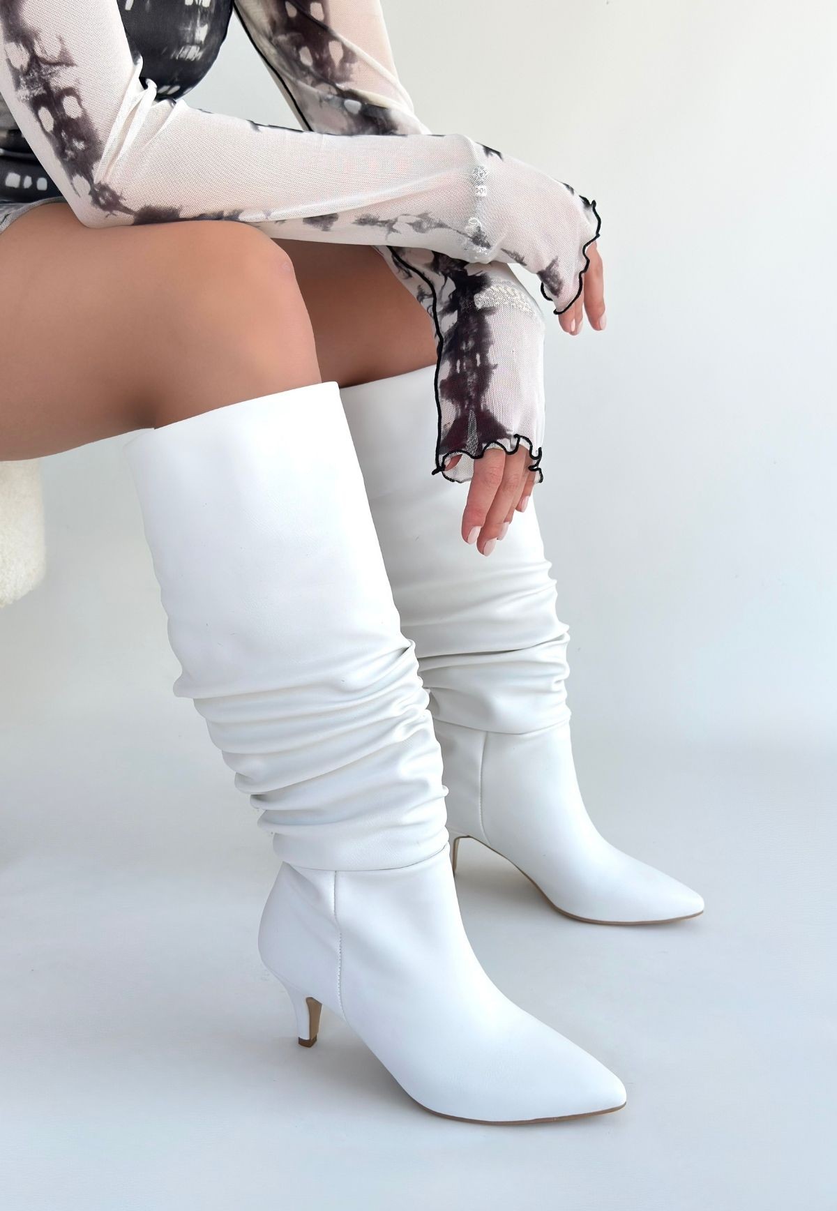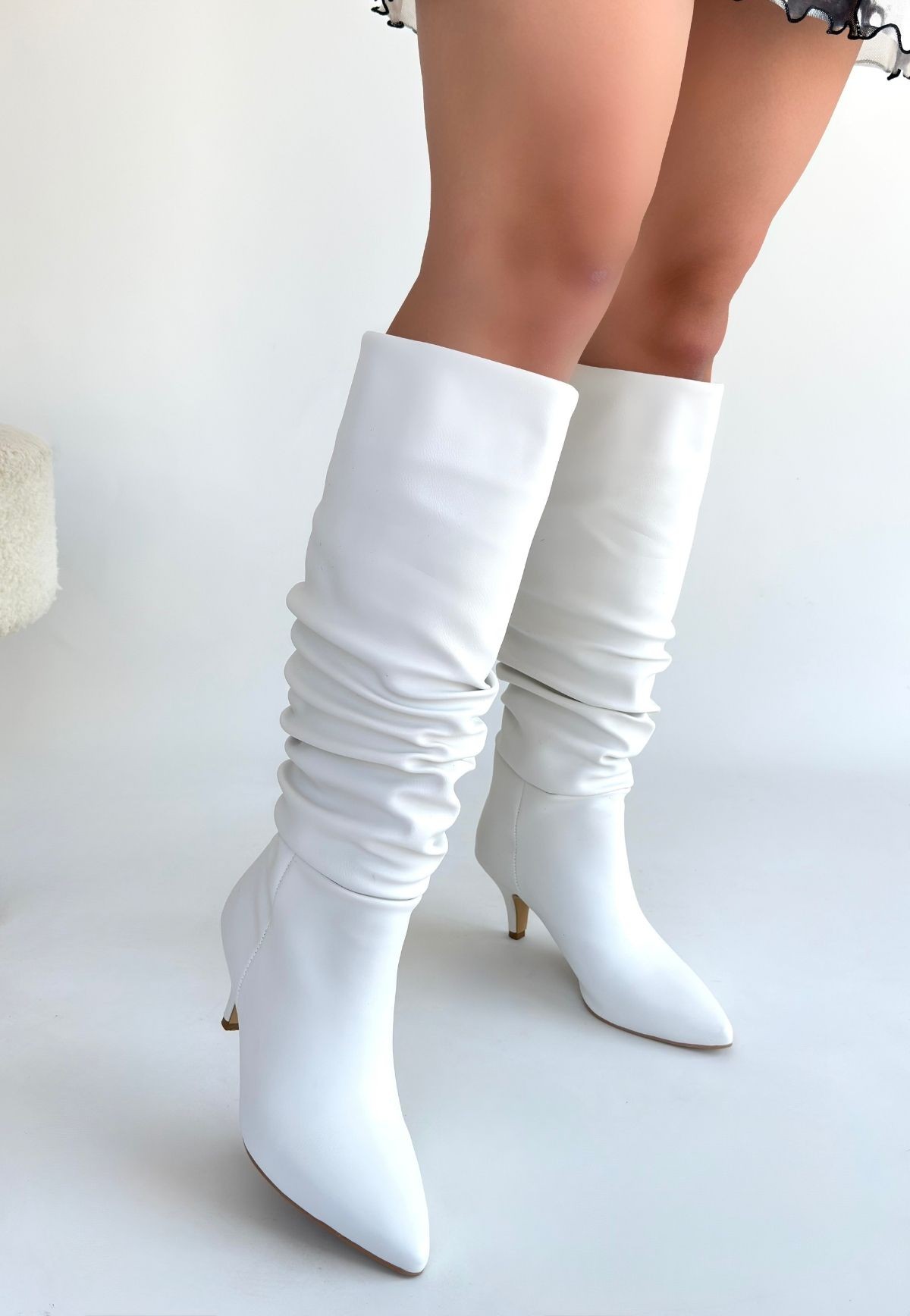 Çizme Zelya Beyaz Cilt Topuklu Çizme