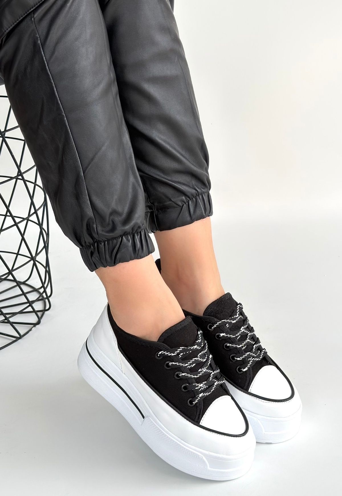 • Dalen Siyah Keten Bağcıklı Spor Ayakkabı