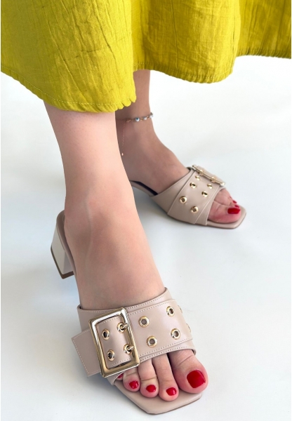 • Riboy Beyaz Cilt Dolgu Topuk Sandalet