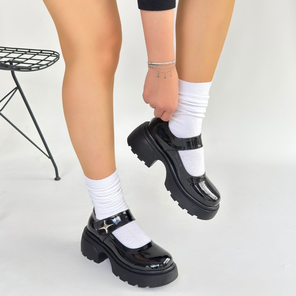 Siyat Siyah Rugan Dolgu Topuk Oxford Ayakkabı