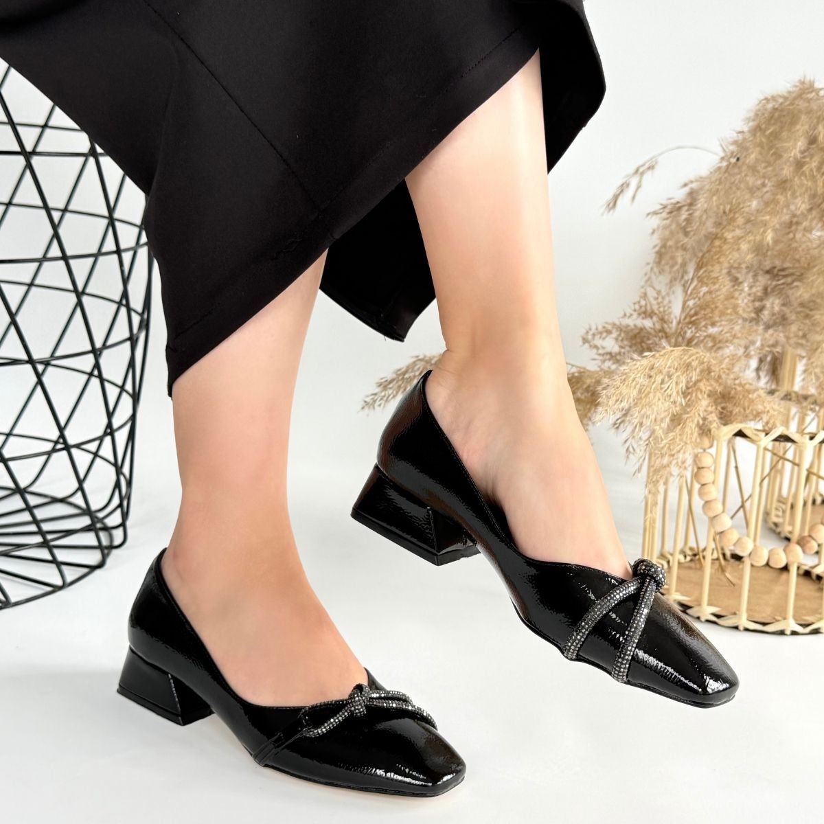 • Estay Siyah Rugan Topuklu Ayakkabı