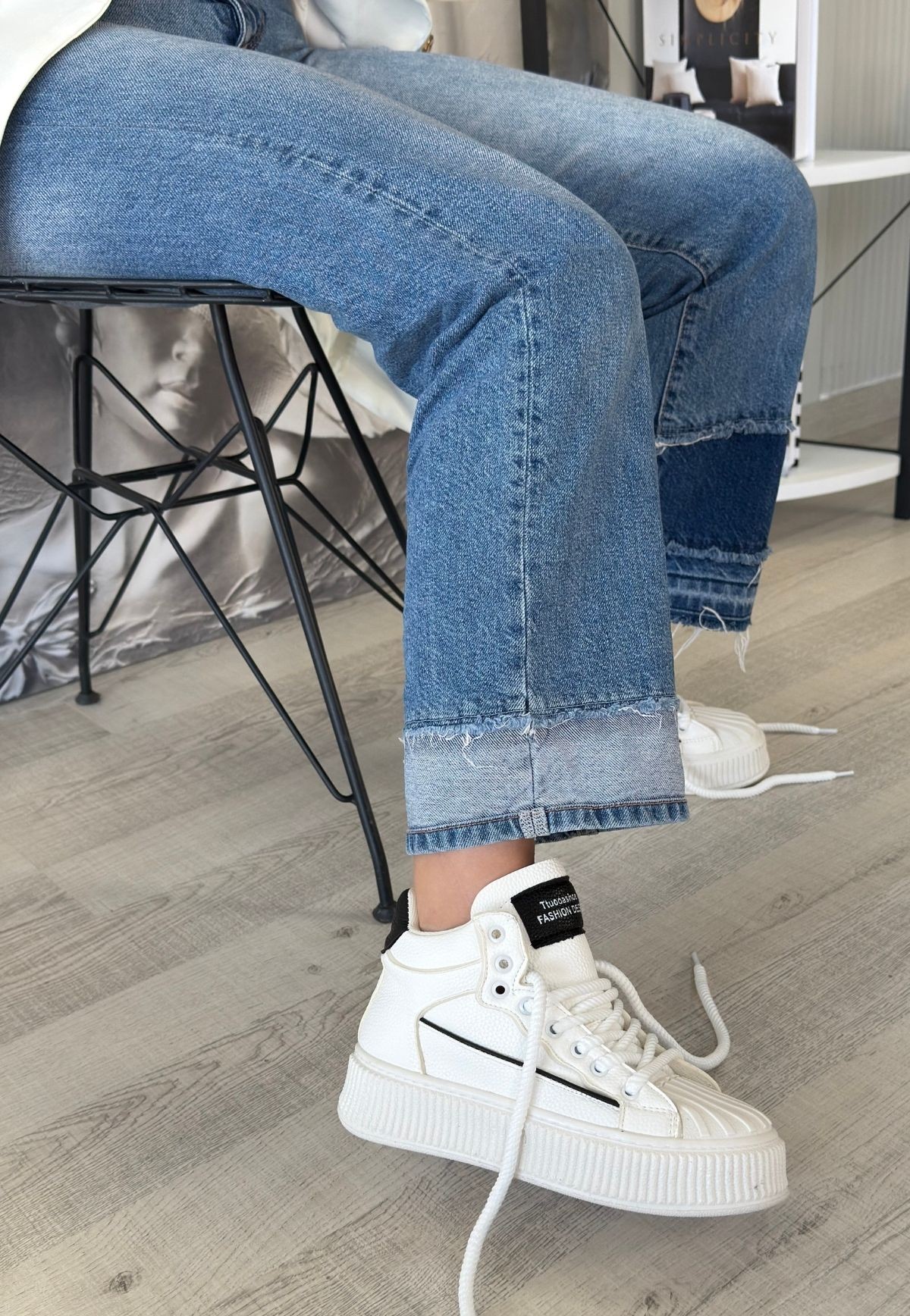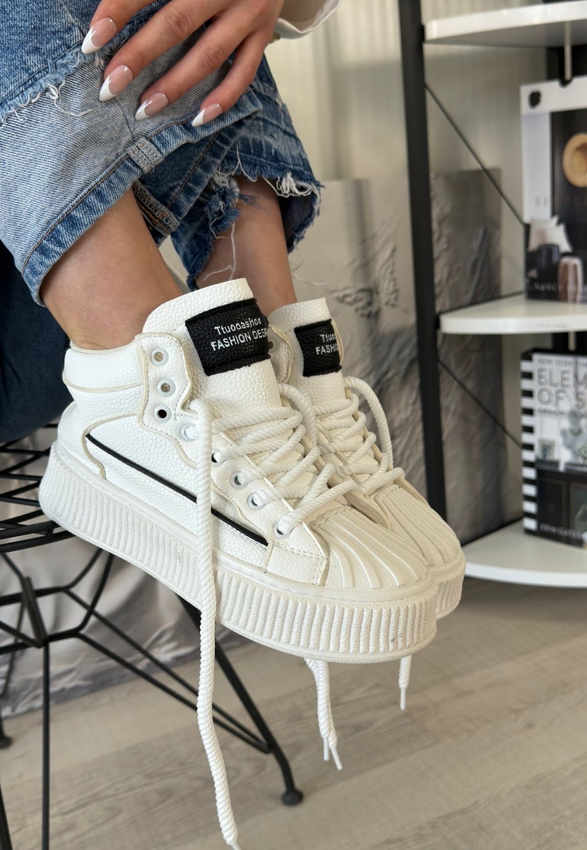 • Estim Beyaz Cilt Siyah Detaylı Bağcıklı Spor Ayakkabı