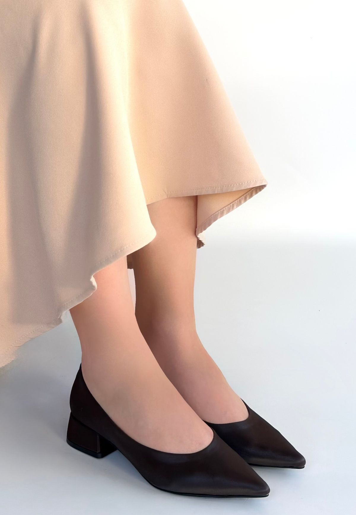 • Ferla Acı Kahve Cilt Topuklu Ayakkabı