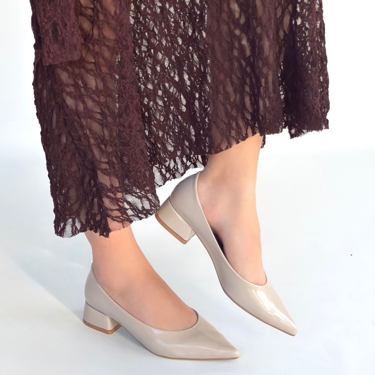 • Ferla Bej Rugan Topuklu Ayakkabı
