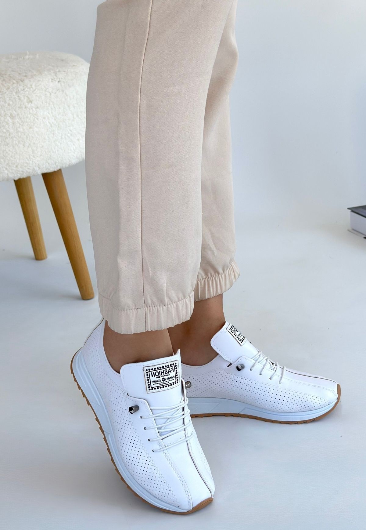 • Fiert Beyaz Cilt Bağcıklı Spor Ayakkabı