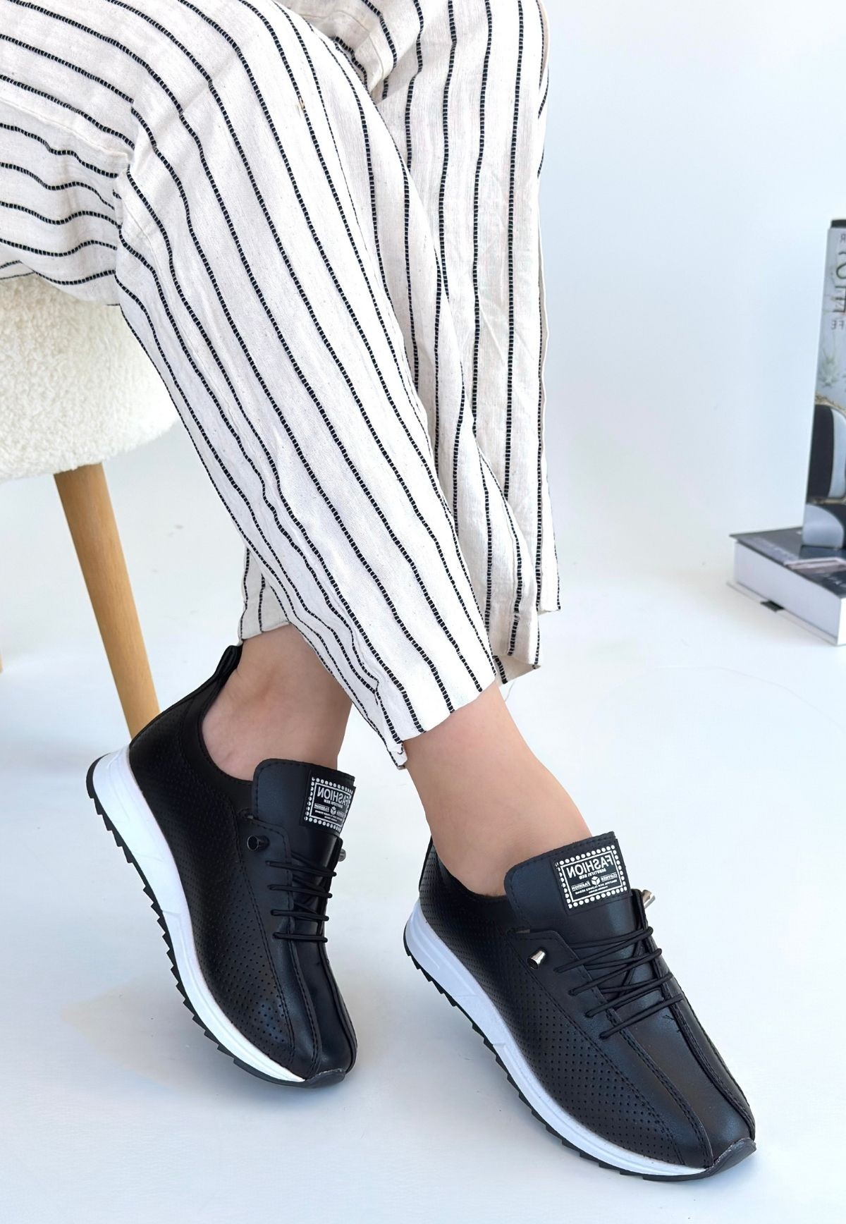 • Fiert Siyah Cilt Bağcıklı Spor Ayakkabı