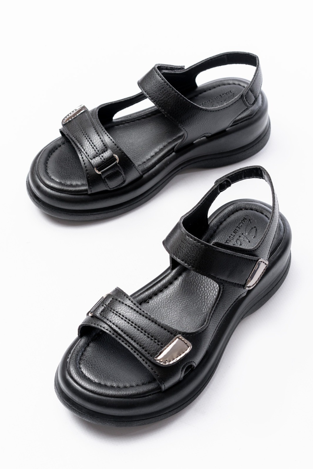 • Ginya Siyah Cilt Cırt Cırtlı Sandalet