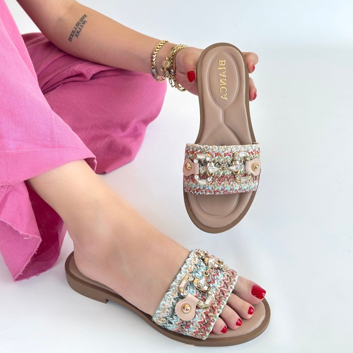 • Gonne Renkli Hasır Dokuma Terlik