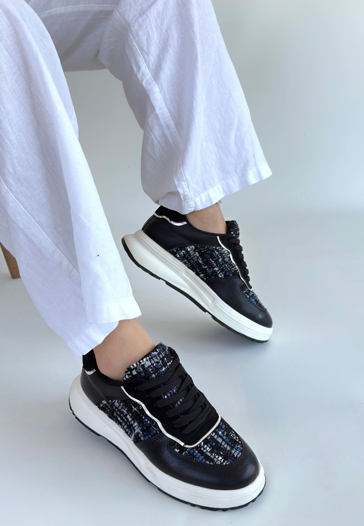 • Hawer Siyah Cilt Bağcıklı Spor Ayakkabı