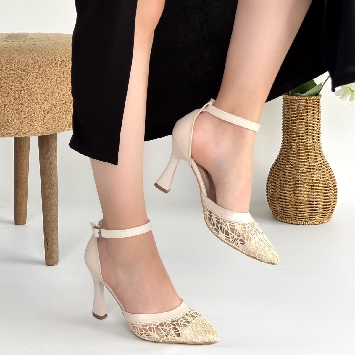 • Hejja Bej Cilt Tül Detaylı Topuklu Ayakkabı