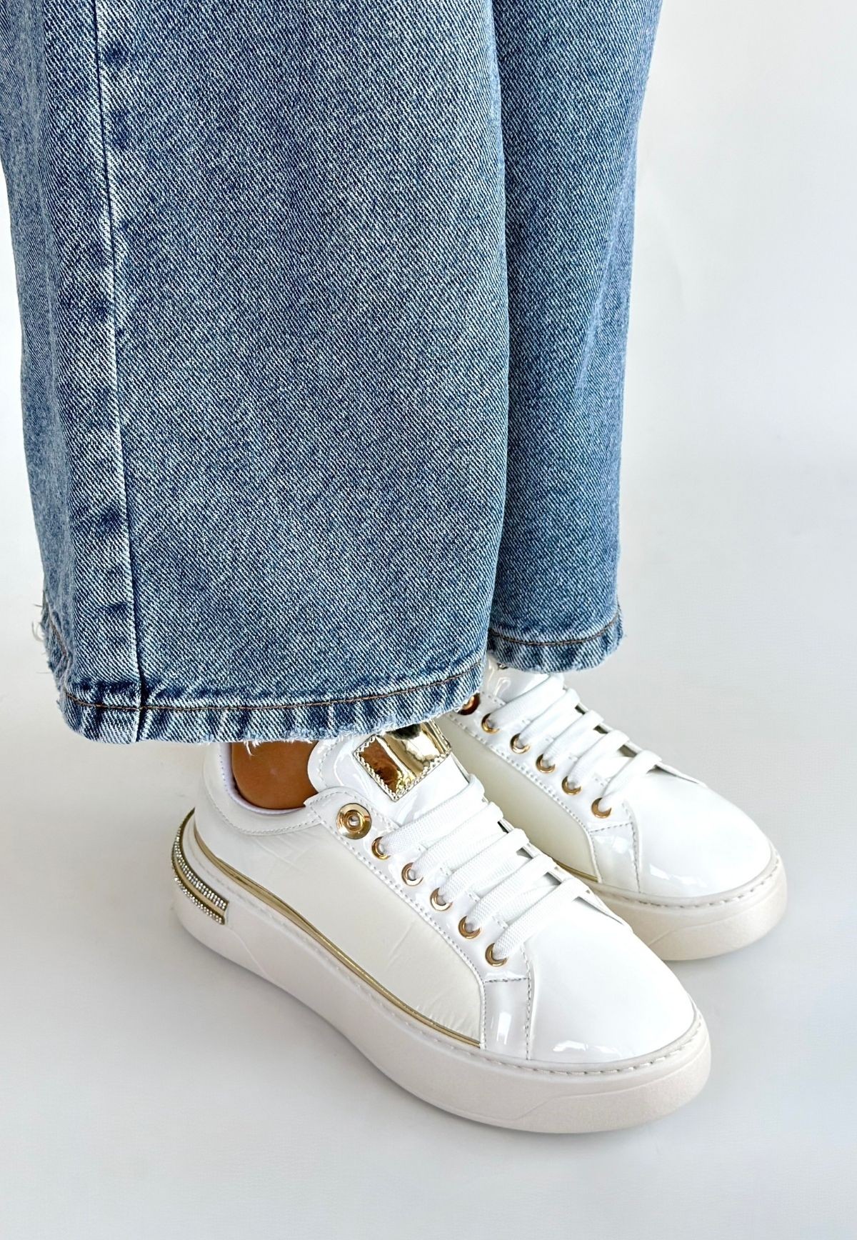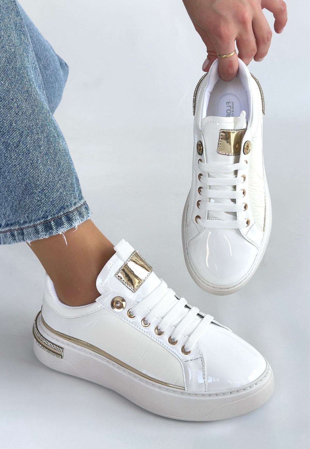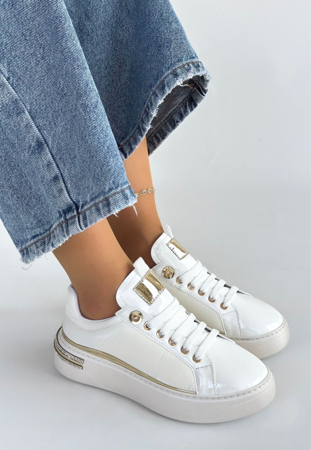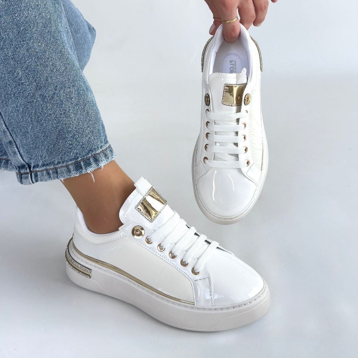 • Hley Beyaz Rugan Paraşüt Detaylı Bağcıklı Spor Ayakkabı