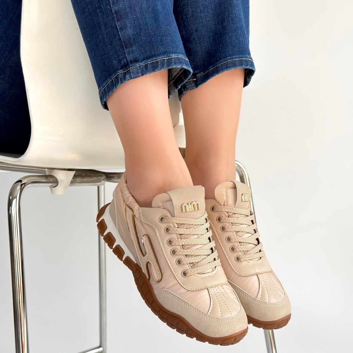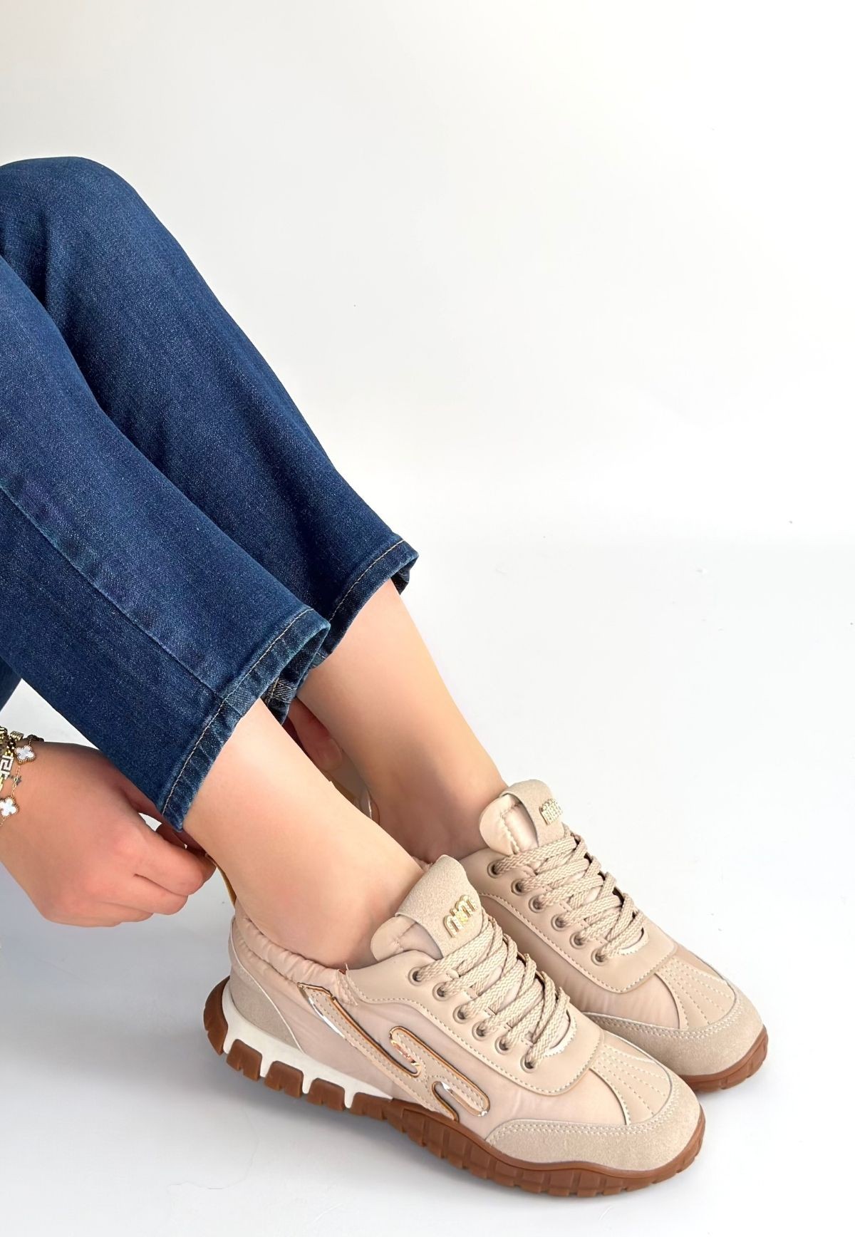 • Huer Bej Nubuk Bağcıklı Spor Ayakkabı