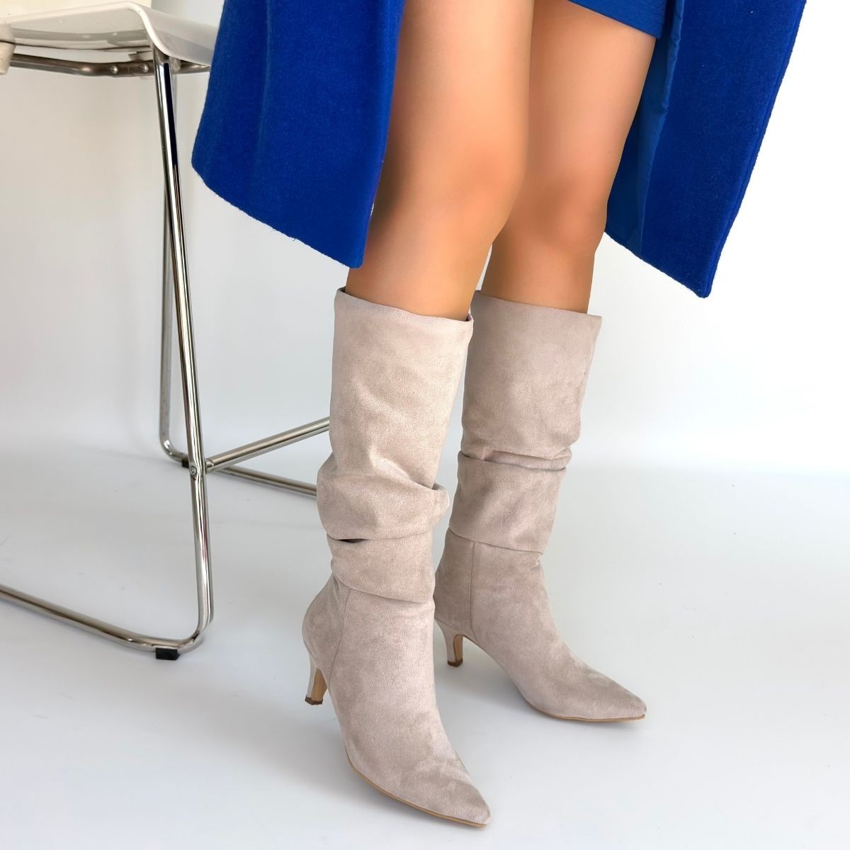 • İwon Bej Süet Körüklü Çizme