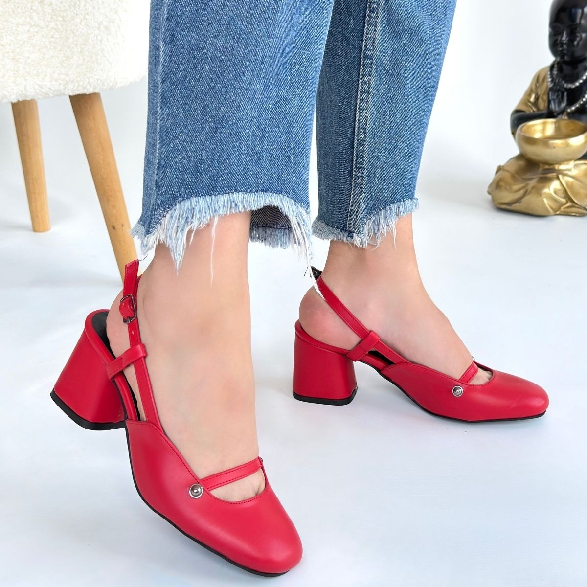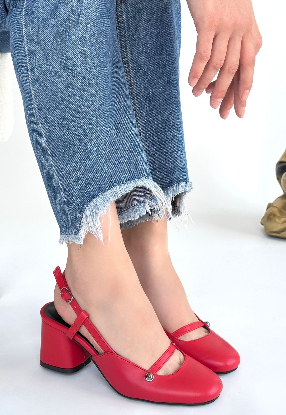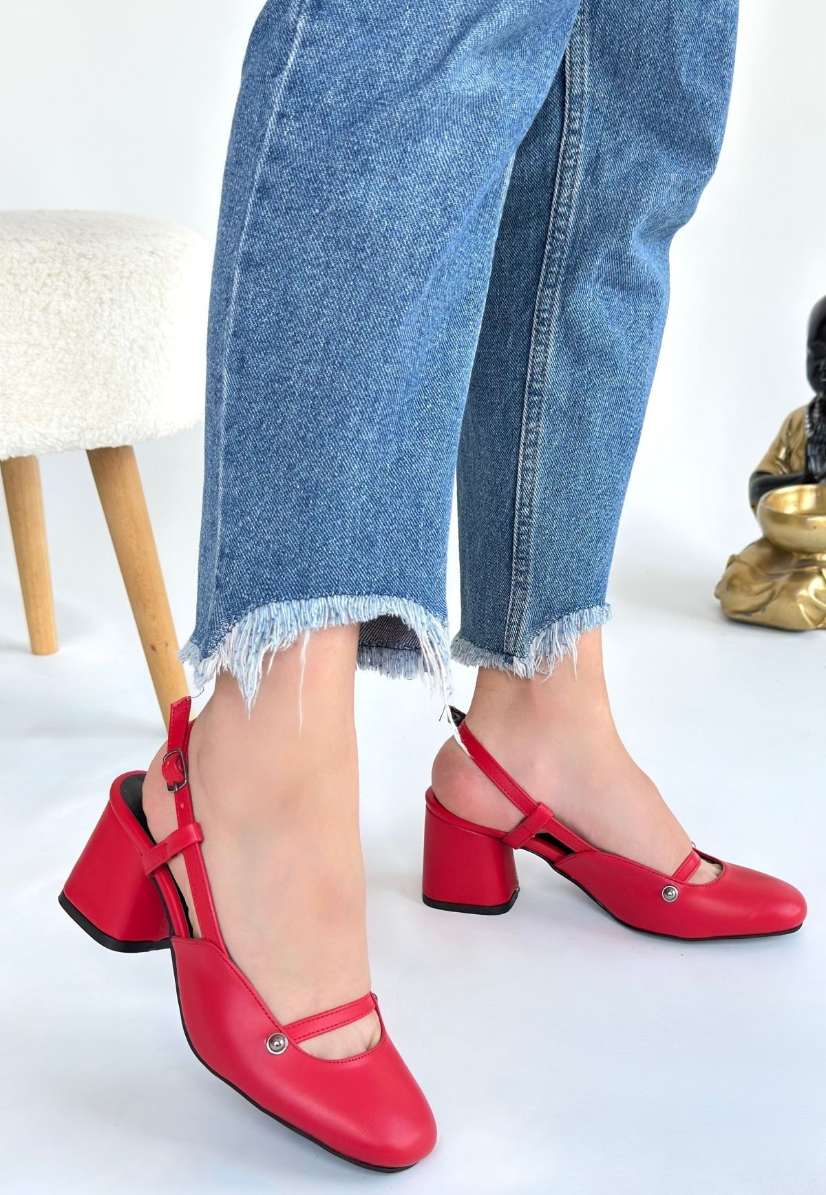 • Jecci Kırmızı Cilt Topuklu Ayakkabı