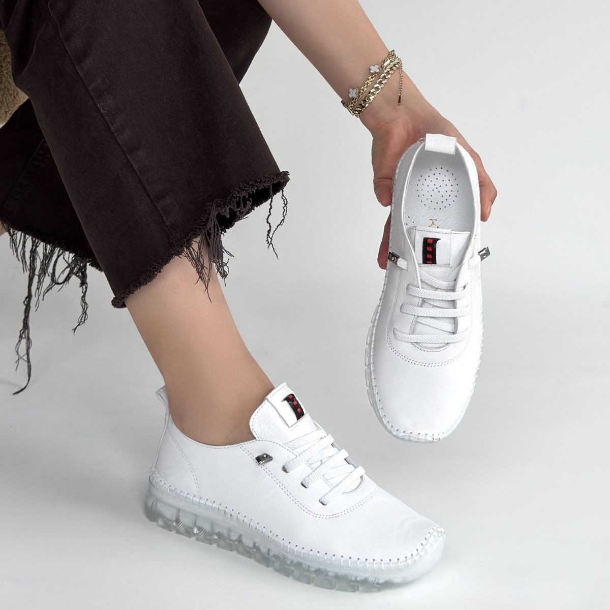 Jiten Beyaz Deri Bağcıklı Spor Ayakkabı
