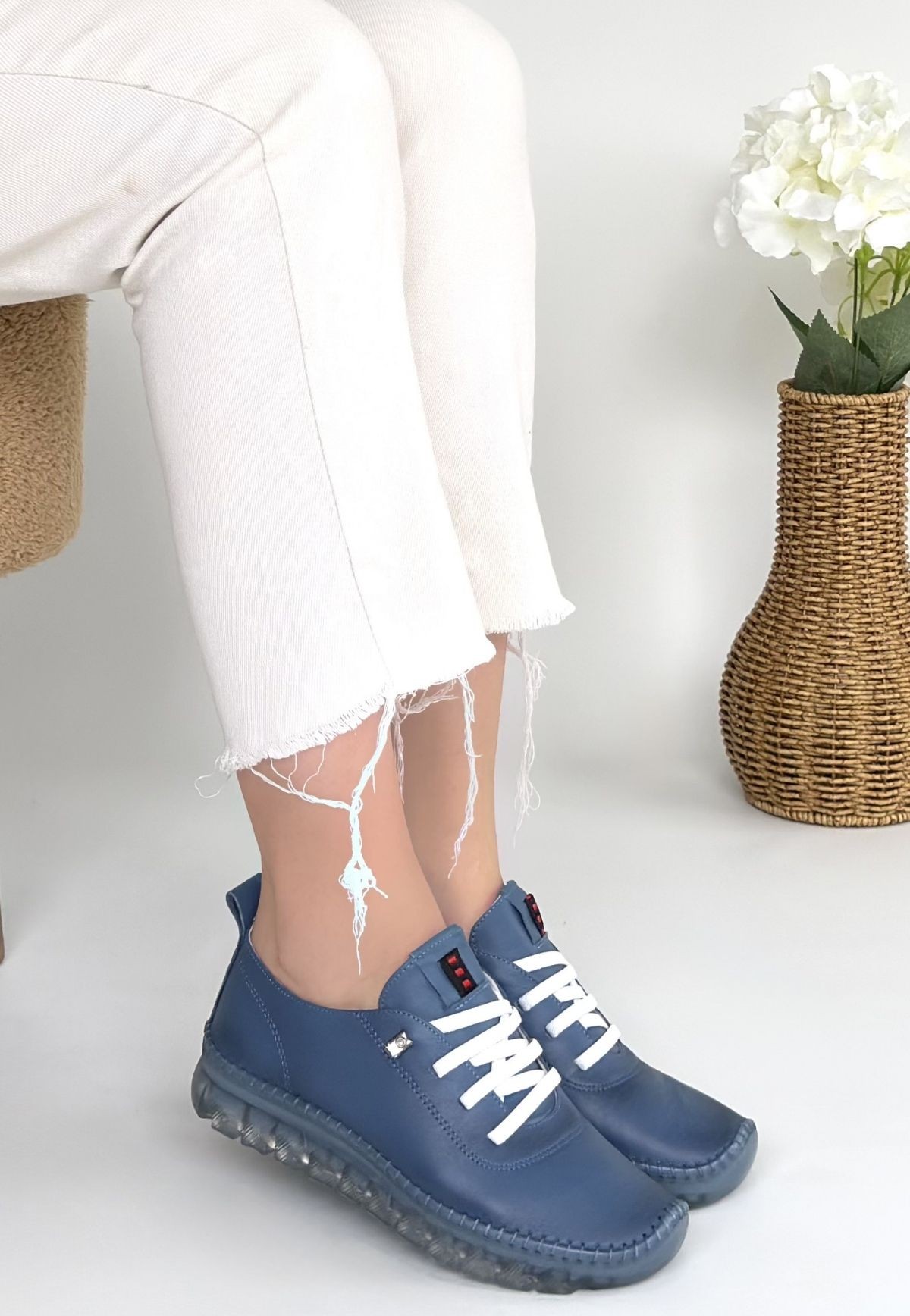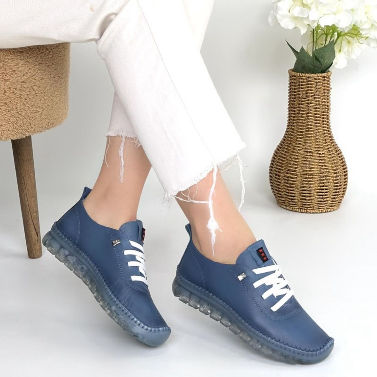 Jiten Mavi Deri Bağcıklı Spor Ayakkabı