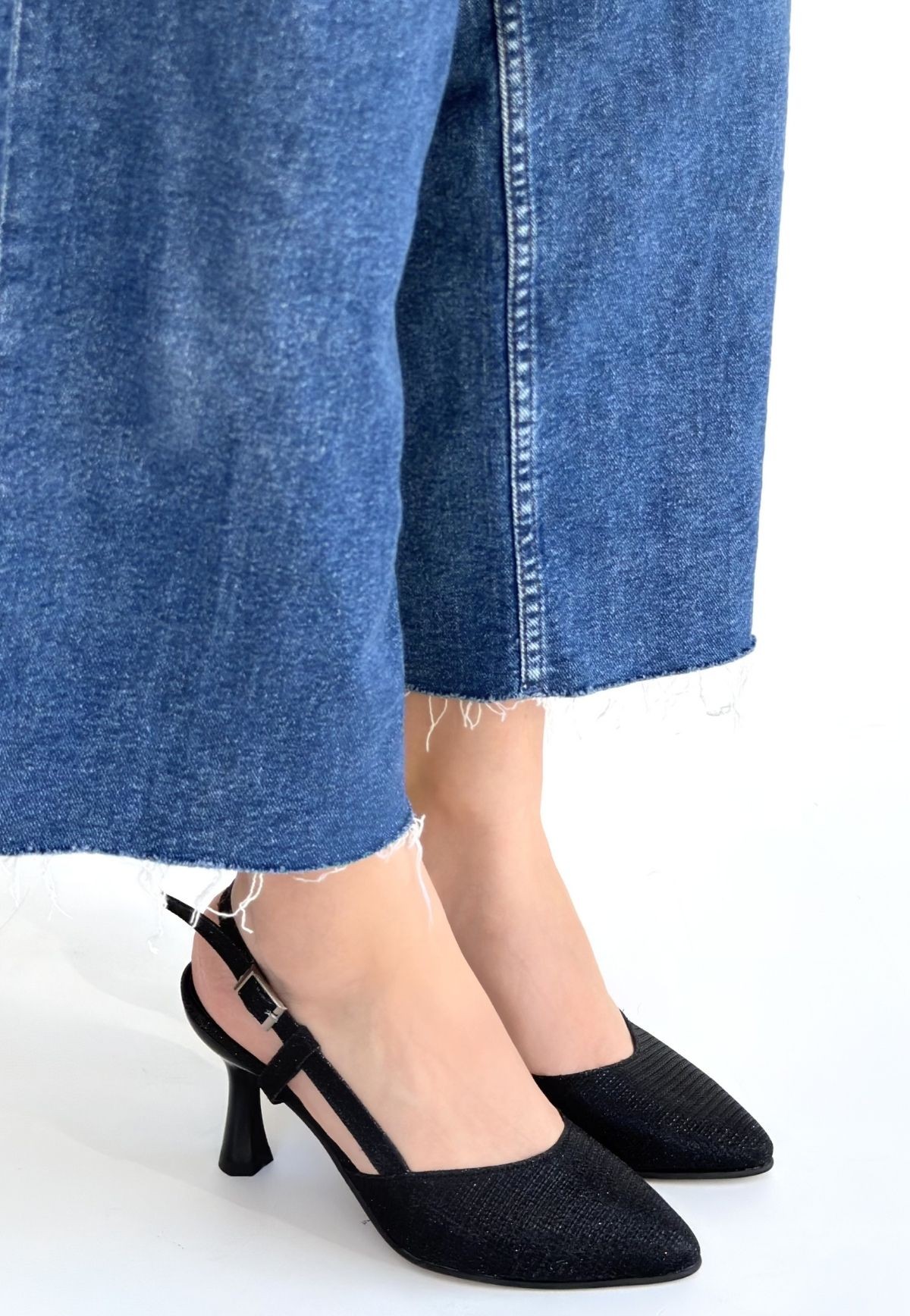 • Joga Siyah Saten Simli Topuklu Ayakkabı