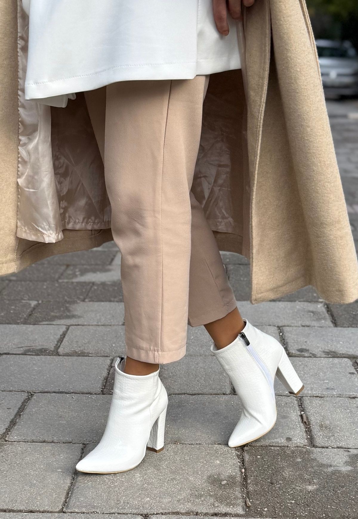 • Loora Beyaz Rugan Desenli Topuklu Bot