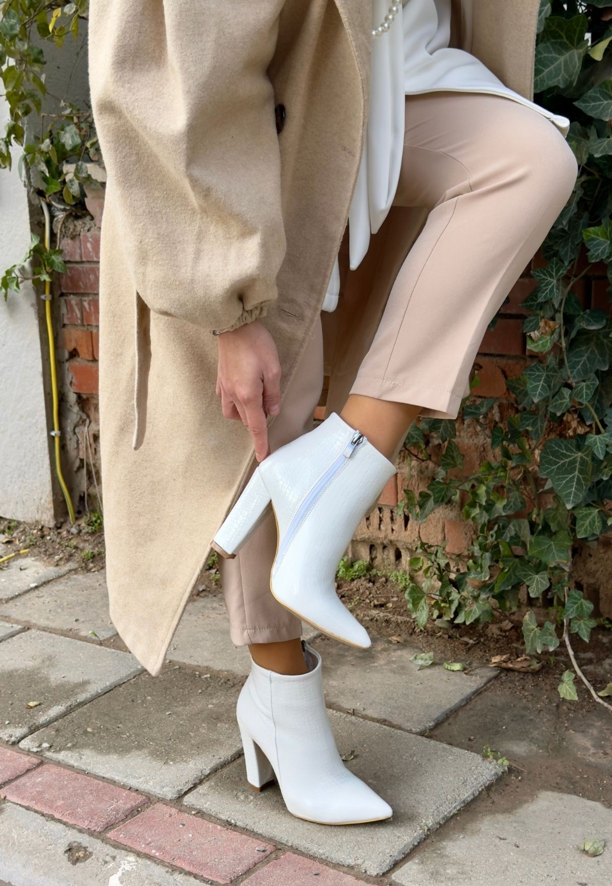 Kadın Bot Loora Beyaz Rugan Desenli Topuklu Bot