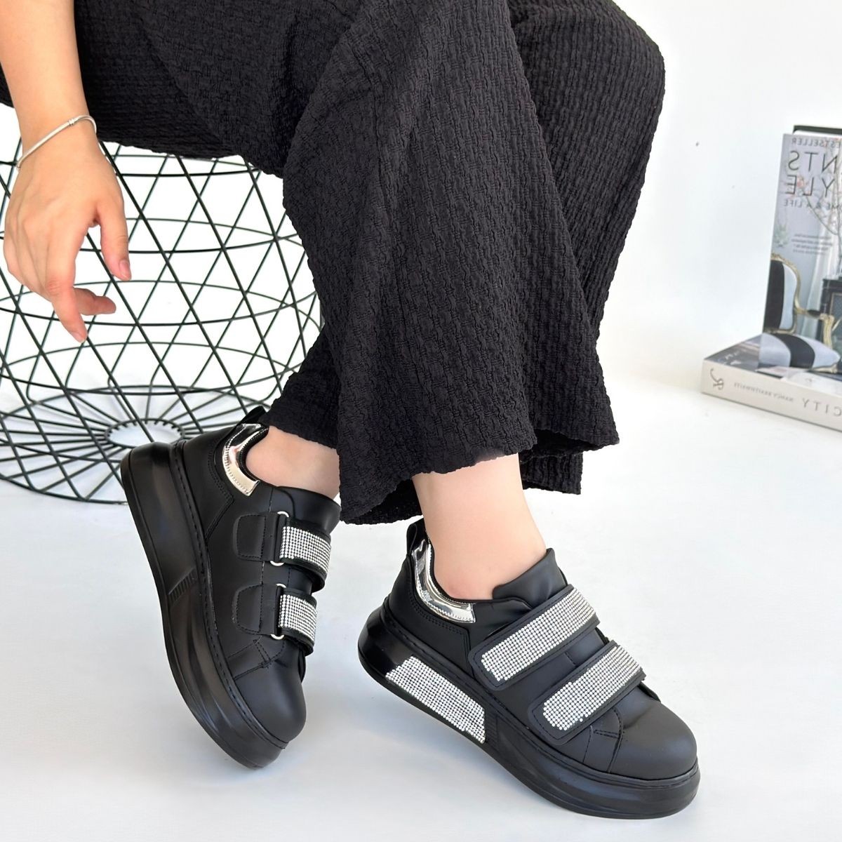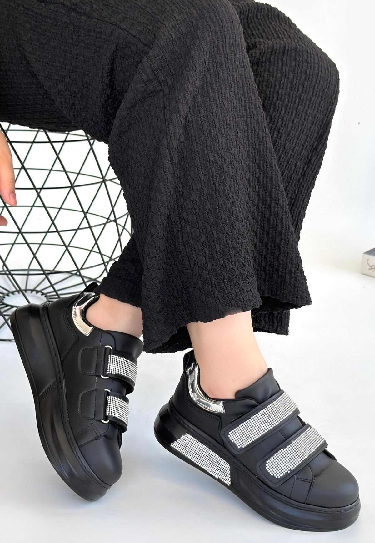 Kadın Spor Nino Siyah Cilt Cırt Cırtlı Spor Ayakkabı