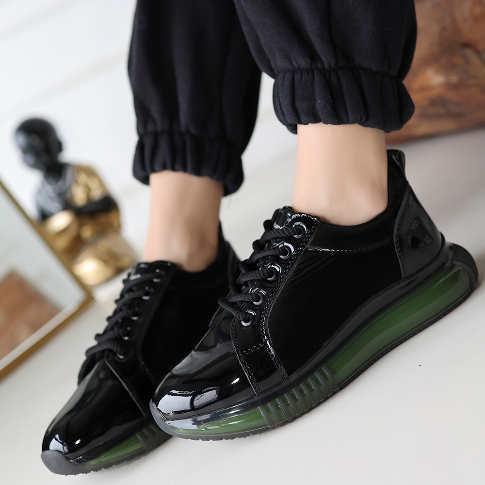 Kadın Spor Piona Siyah Rugan Yeşil Tabanlı Spor Ayakkabı
