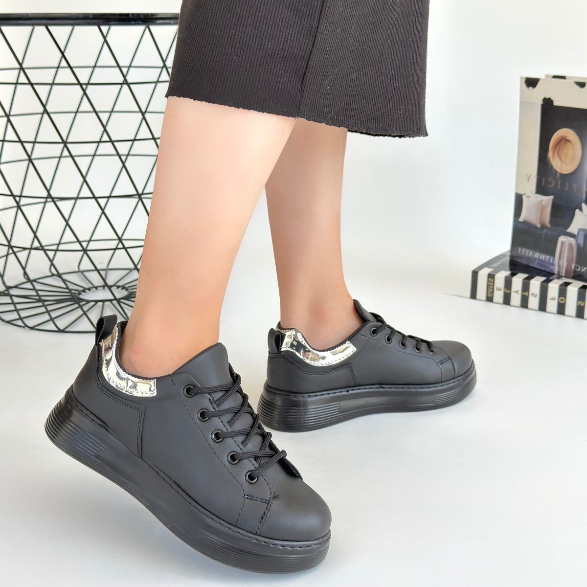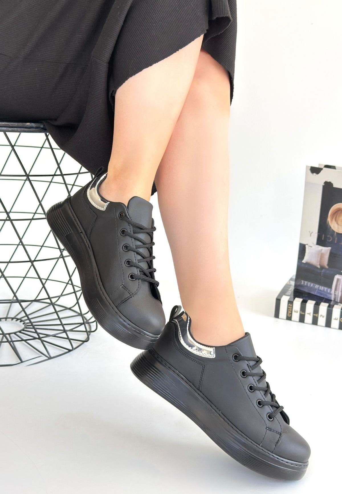 Kadın Spor Sofio Siyah Cilt Bağcıklı Spor Ayakkabı