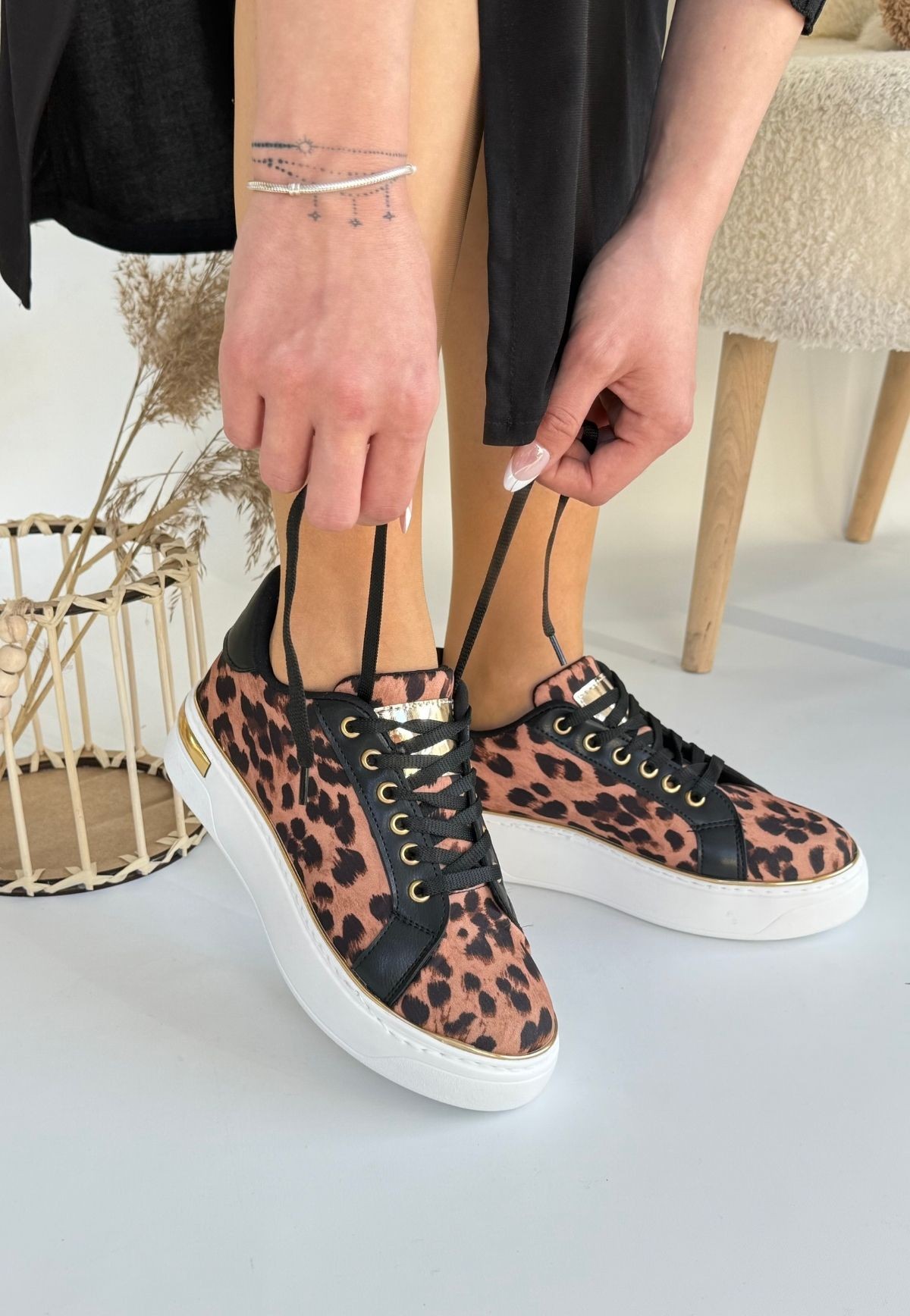 • Kity Leopar Saten Bağcıklı Spor Ayakkabı