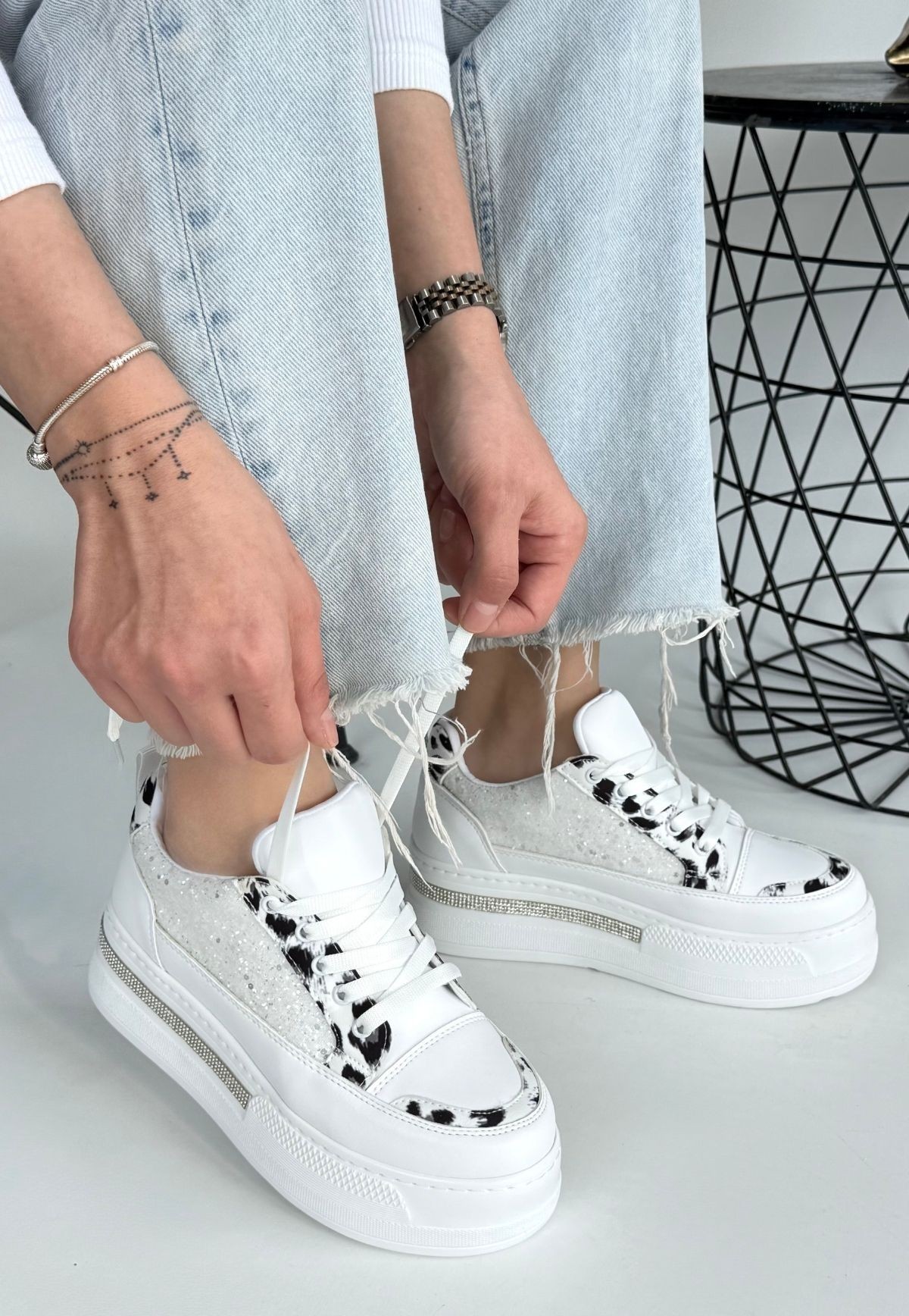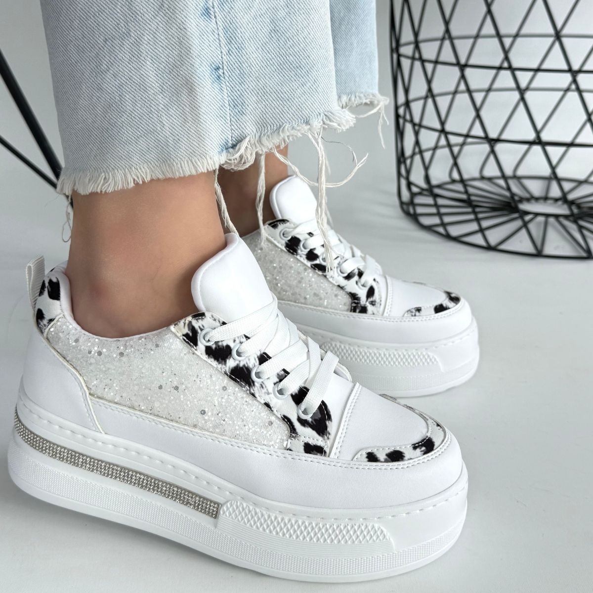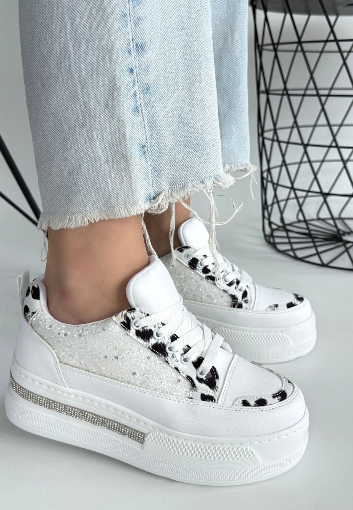 • Lawin Beyaz Cilt Beyaz Simli Bağcıklı Spor Ayakkabı