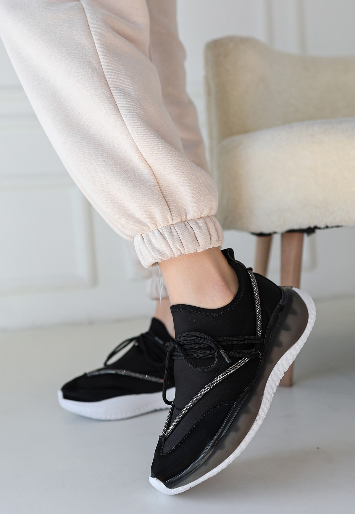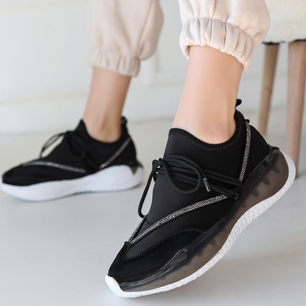 Liney Siyah Rugan Bağcıklı Spor Ayakkabı
