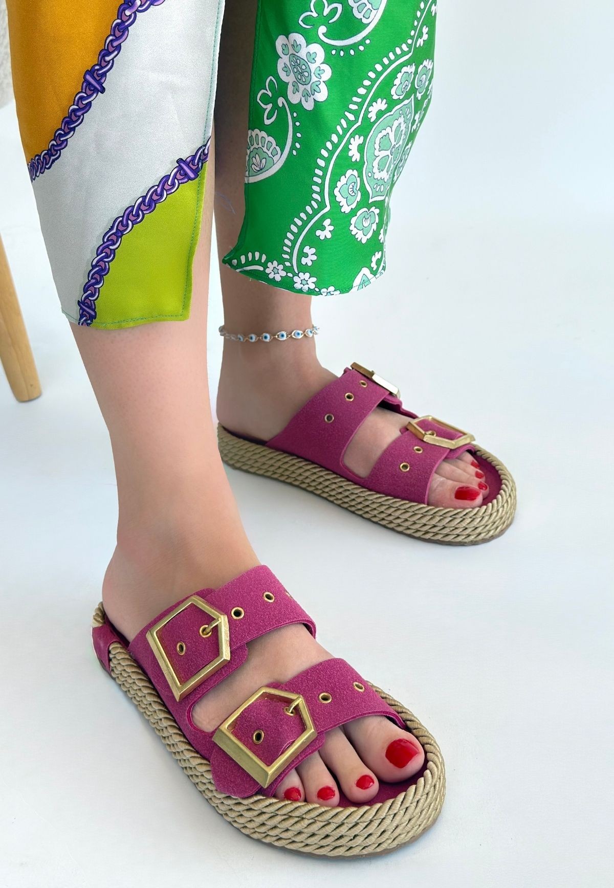 • Loera Pemba Nubuk Çift Tokalı Terlik