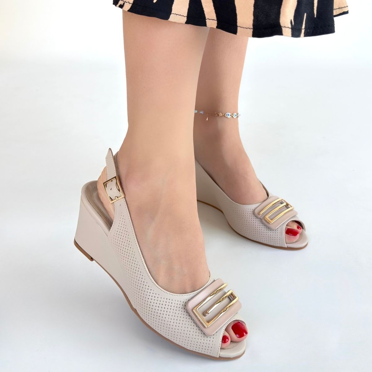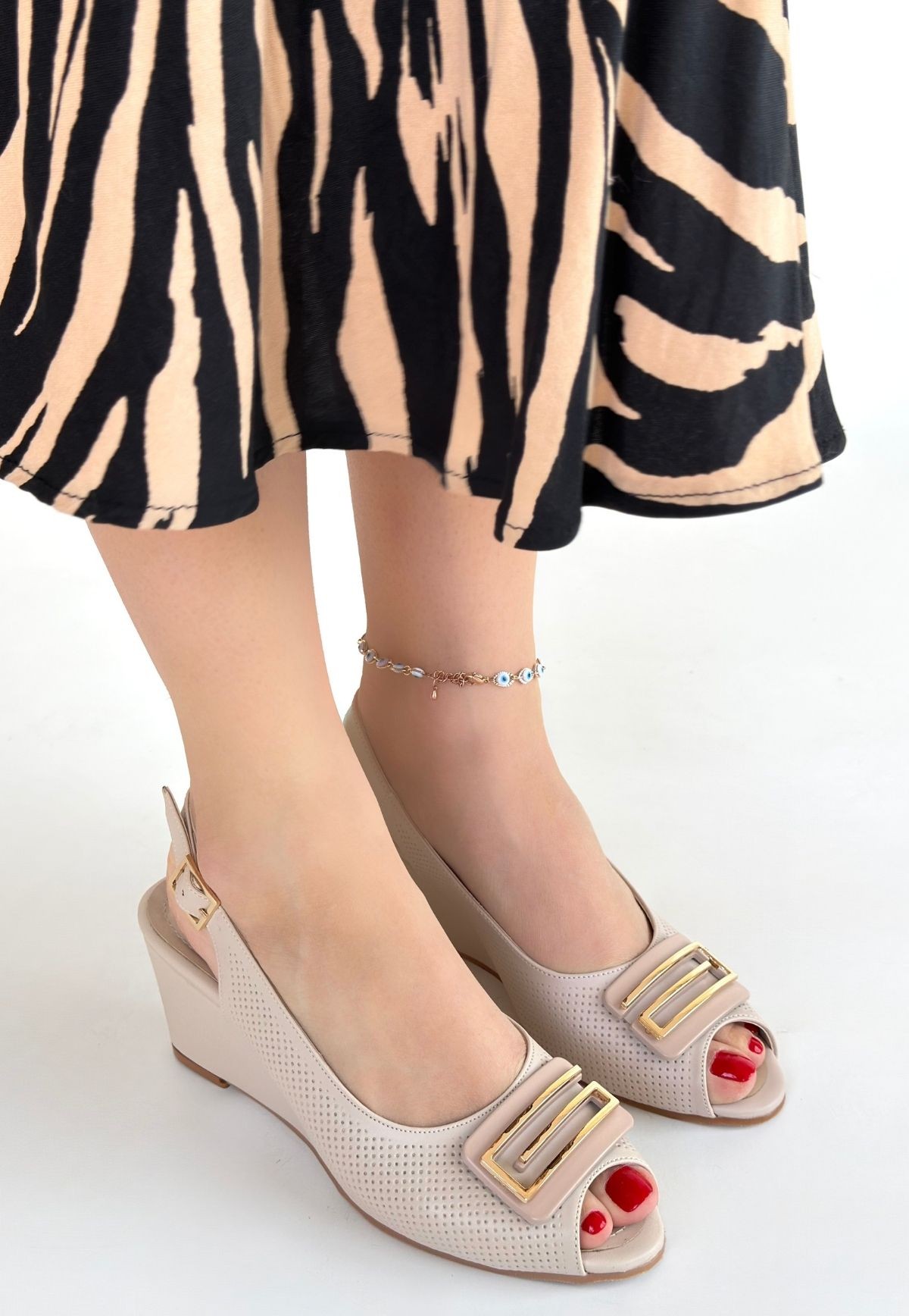 • Mamba Bej Cilt Dolgu Topuk Ayakkabı