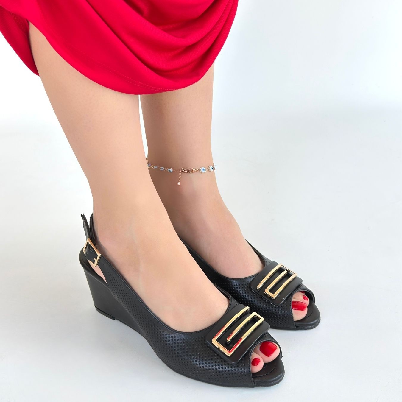 • Mamba Siyah Cilt Dolgu Topuk Ayakkabı